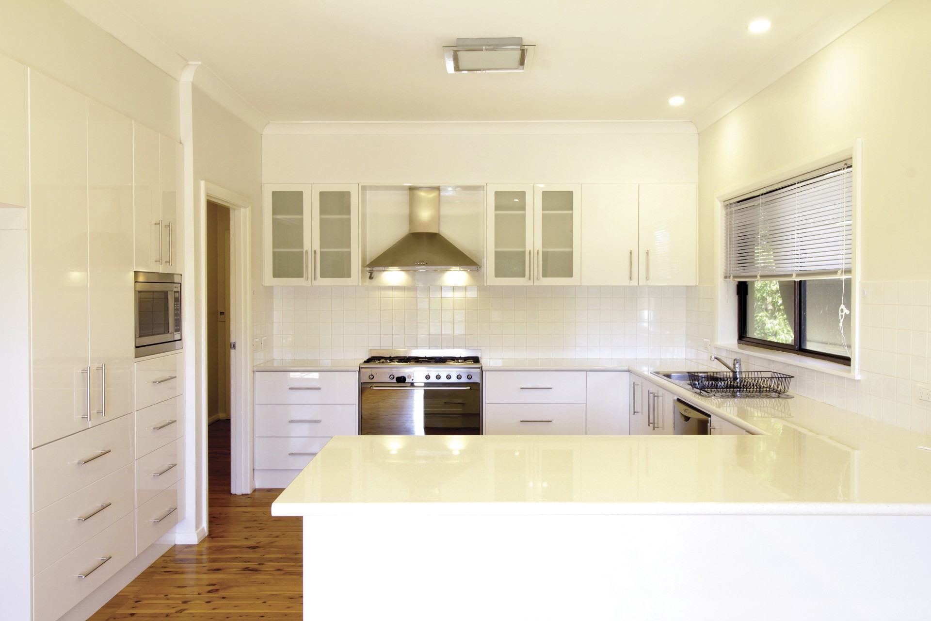 • Modern white kitchen features 900mm SMEG cooker, rangehood and microwave, plus dishwasher and excellent storage.