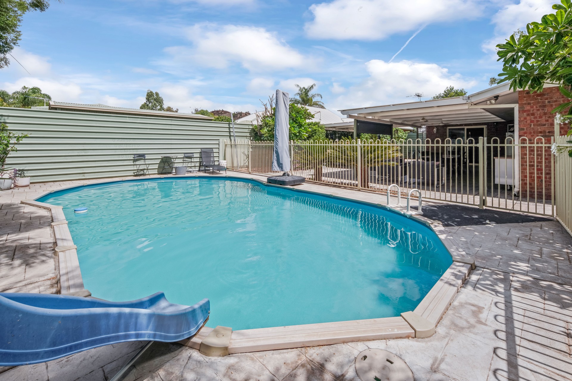 Step outside to discover a backyard paradise, complete with a sparkling pool and mature, established landscaping. Spend warm summer days lounging by the water or dining al fresco under the shade of the patio cover.