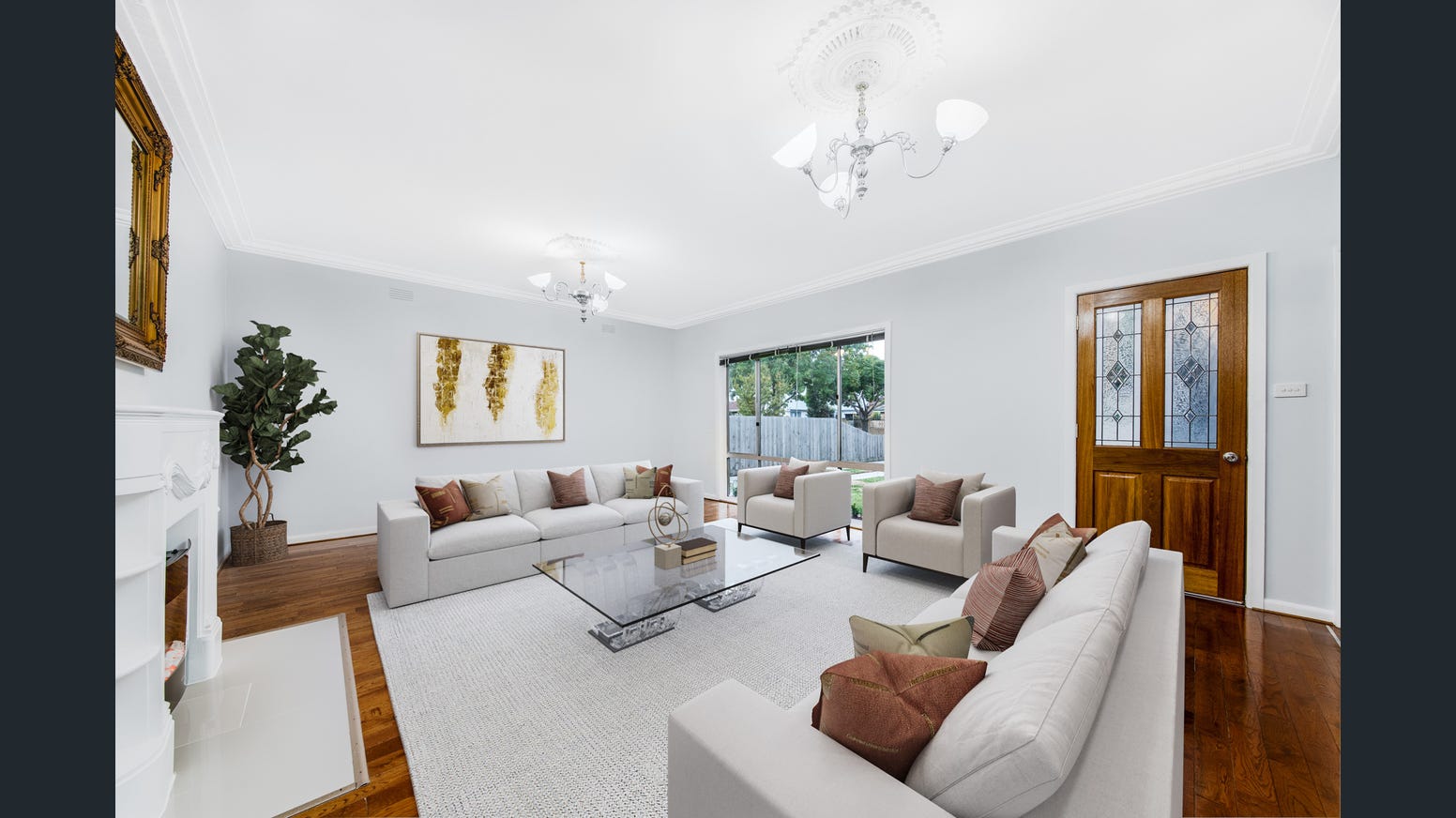 • Loaded with charming features including an authentic crystal chandelier, brass chandeliers, fireplace, solid wood doors, high ceilings with ceiling roses and hardwood flooring.