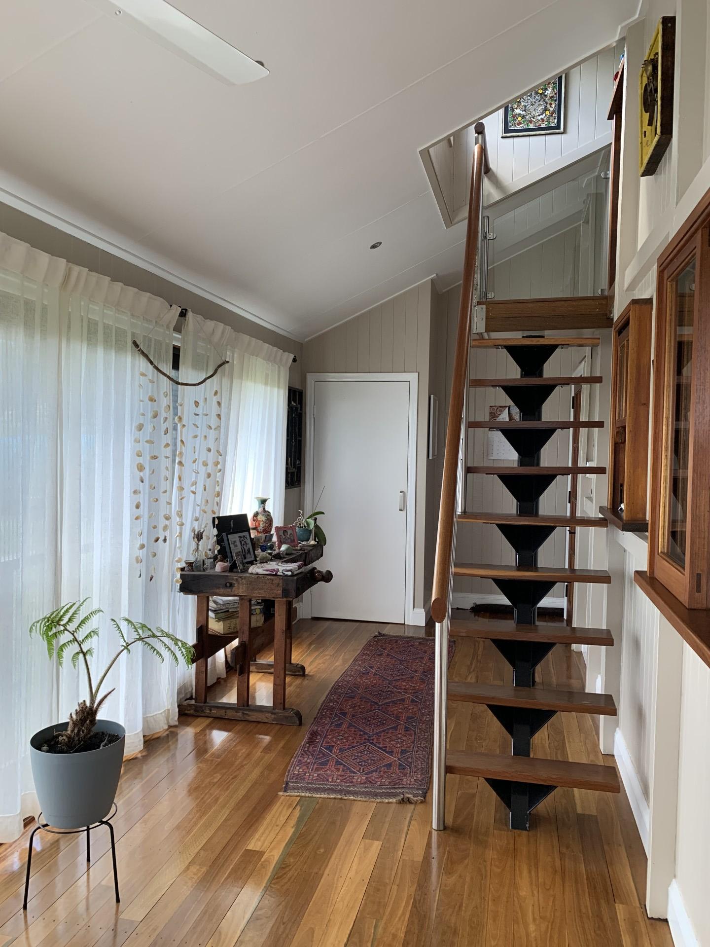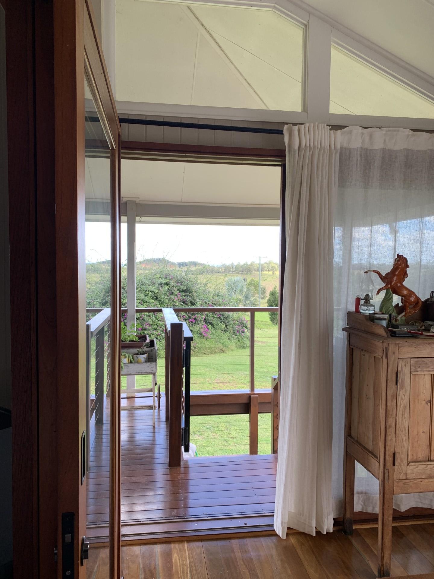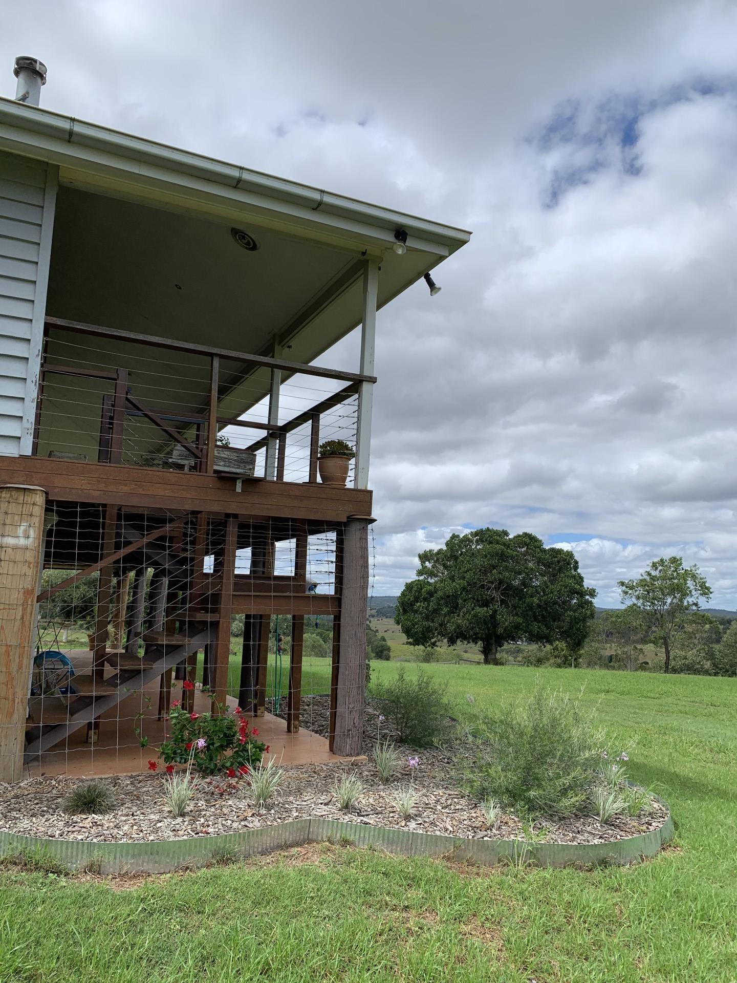 The original farmhouse (built circa 1910) has been exquisitely renovated and consists of original timber flooring, spacious master bedroom with ensuite and built-in robes, 2 queen sized bedrooms, a unique loft-style office/studio space, fireplace, family bathroom, open plan kitchen with dishwasher and 5-burner stove with bi-energy oven (gas and electric). The original 12-foot ceilings have been raked to the roofline creating an unforgettable sense of space and atmosphere. Fans throughout and split system air conditioning in the lounge/dining, master and one bedroom. Wide verandas on 3 sides and spectacular rural views from every room. Enclosed downstairs utility room is very spacious and combines laundry and additional built-in storage. House is connected to 3 rainwater tanks with a first flush system, collectively providing 60,000 litres water storage. The farmhouse boasts an established orchard with lime, lemon, orange, mandarin, grapefruit, cumquat, mulberry, jaboticaba, and bowen mango. There is also a 6m x 3m greenhouse with 4 raised garden beds.