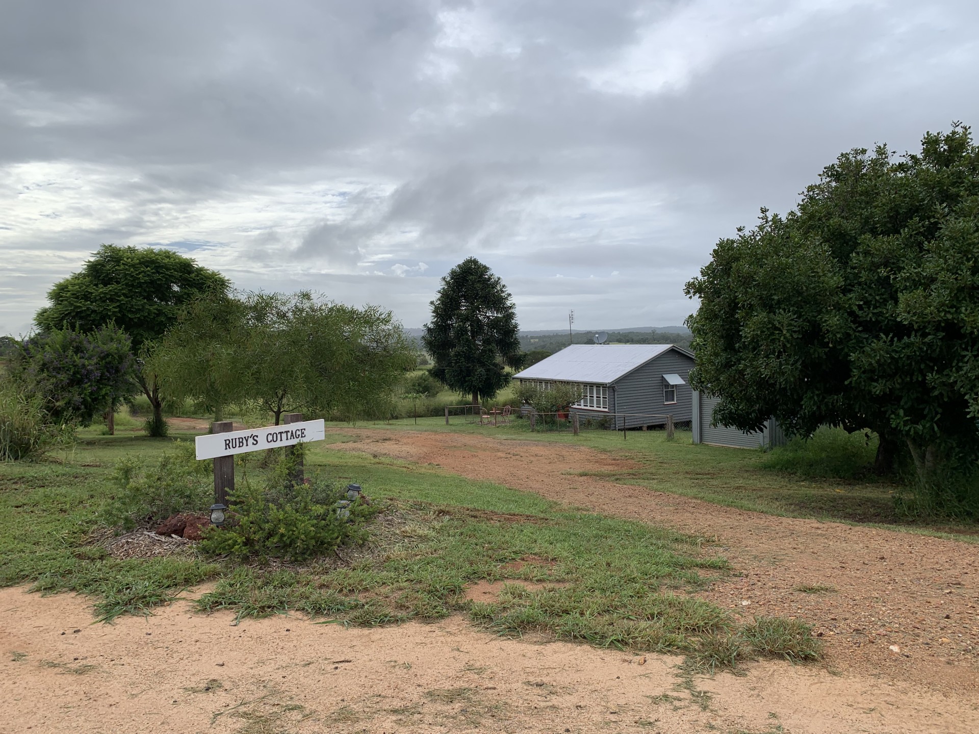 The original cottage (built circa 1940) is 150m from main house and has been operated as a successful BnB business for 3 years. It has been renovated and consists of original timber flooring, one queen bedroom and one single bedroom, sunroom, lounge, kitchen, feature bathroom, and deck. A single bay lock-up garage on cement pad. Cottage is connected to two rainwater tanks providing 50,000 litres water storage. Cottage orchard consists of banana, kalamata olive, muscat grape, orange, lemon, Bowen mango, macadamia all well-established, and recently planted avocados. Available furnished and equipped to continue BnB operation by negotiation. Search Airbnb Proston to view: Ruby's Cottage.