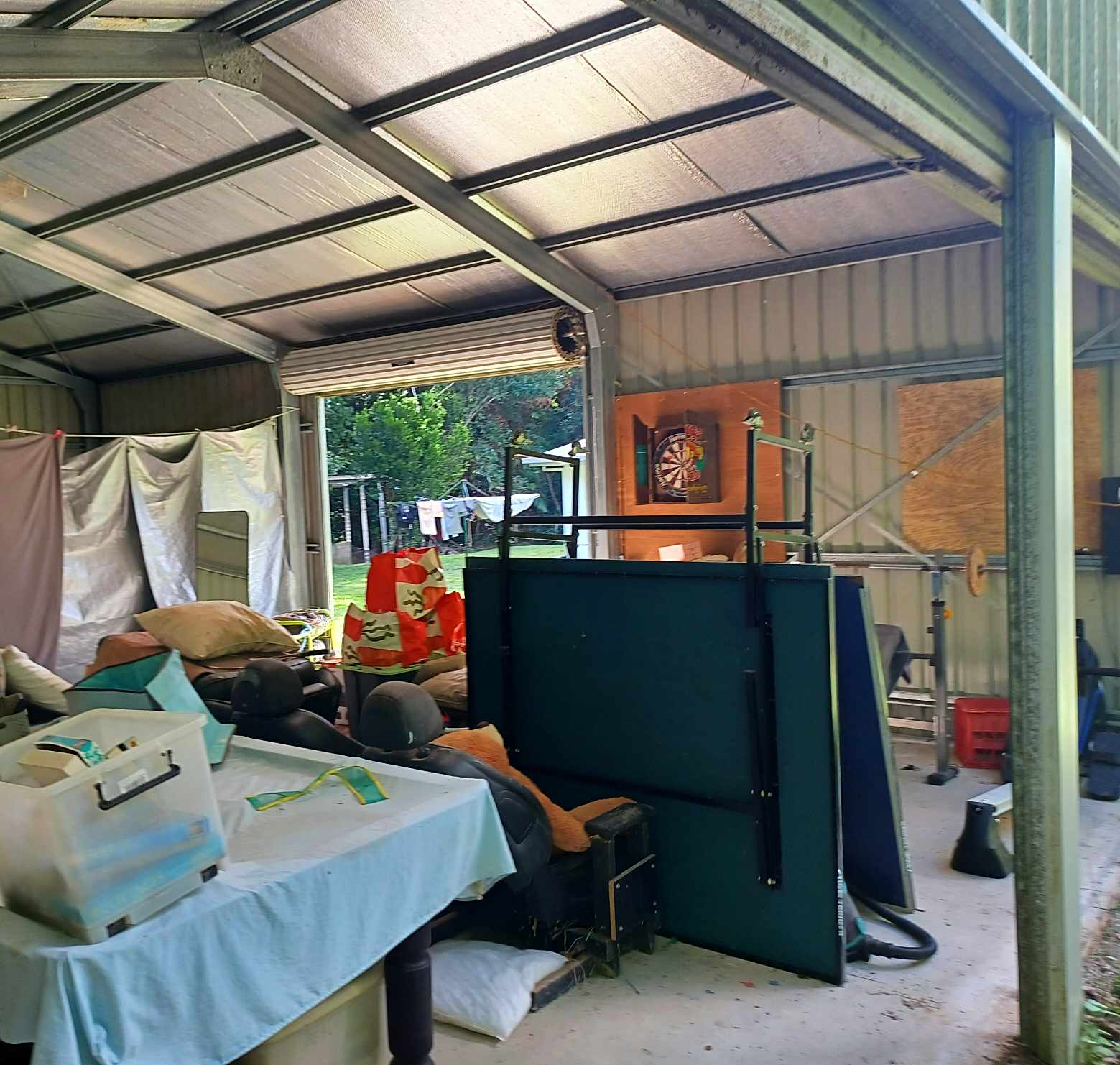 • A very large shed/carport (mancave) with 2 roller doors and 2 access doors directly behind the main house.