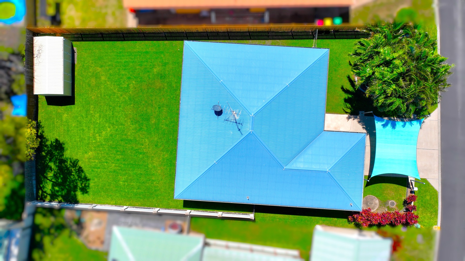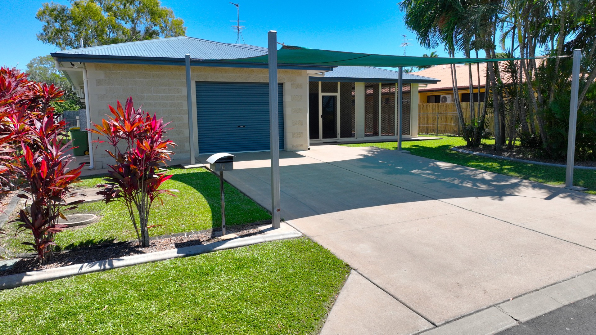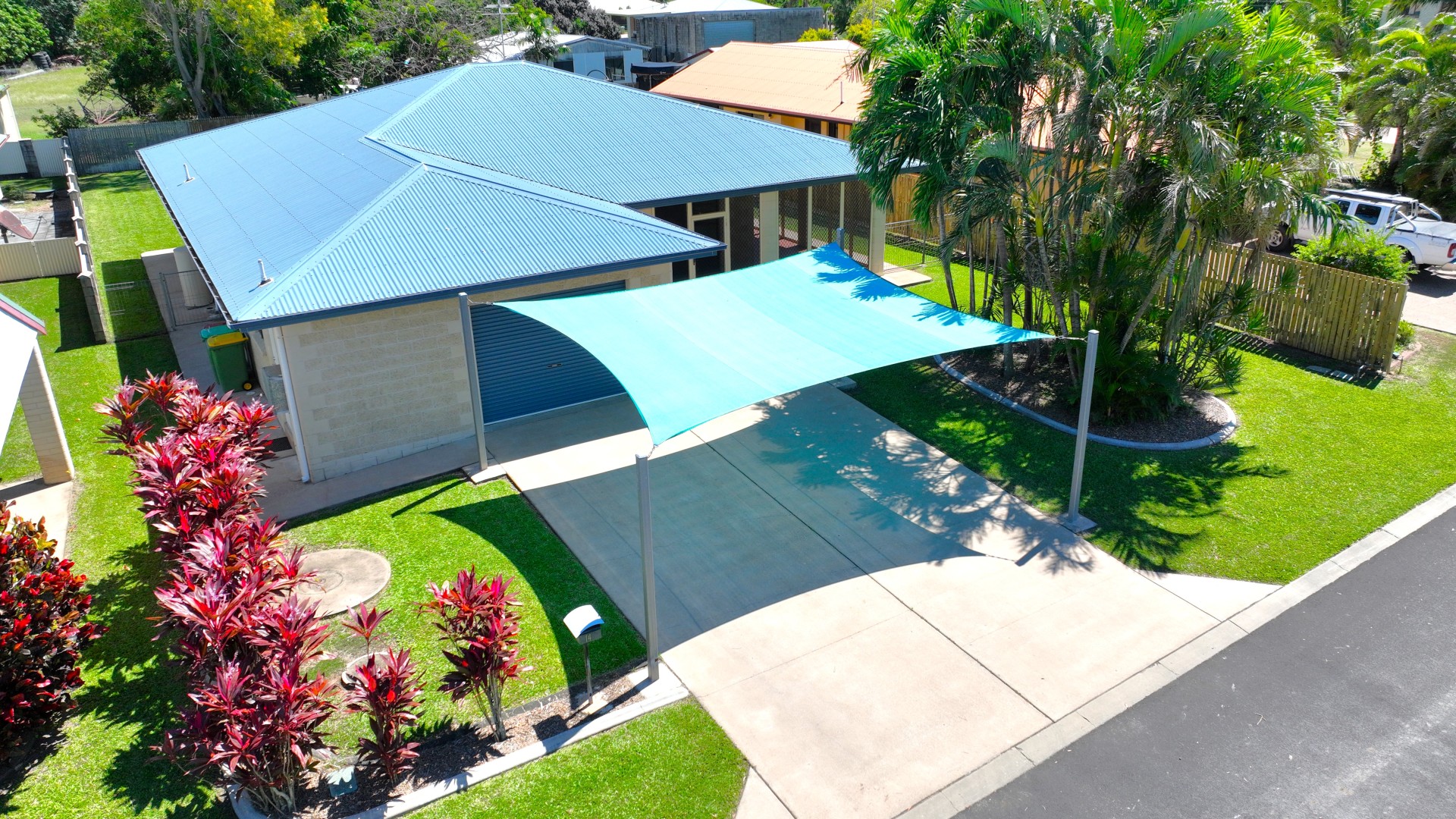 - Shade sail over concrete driveway