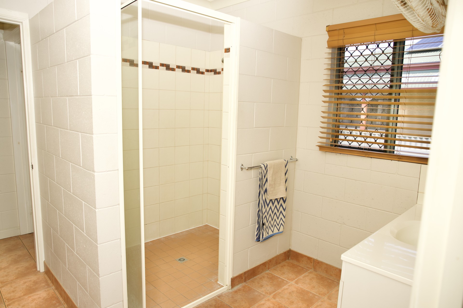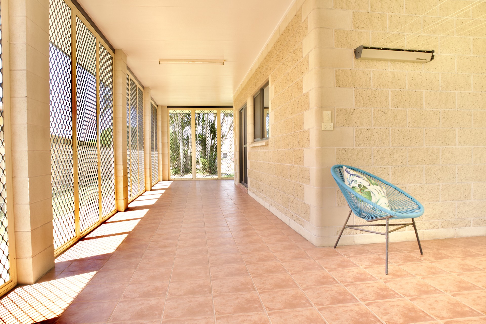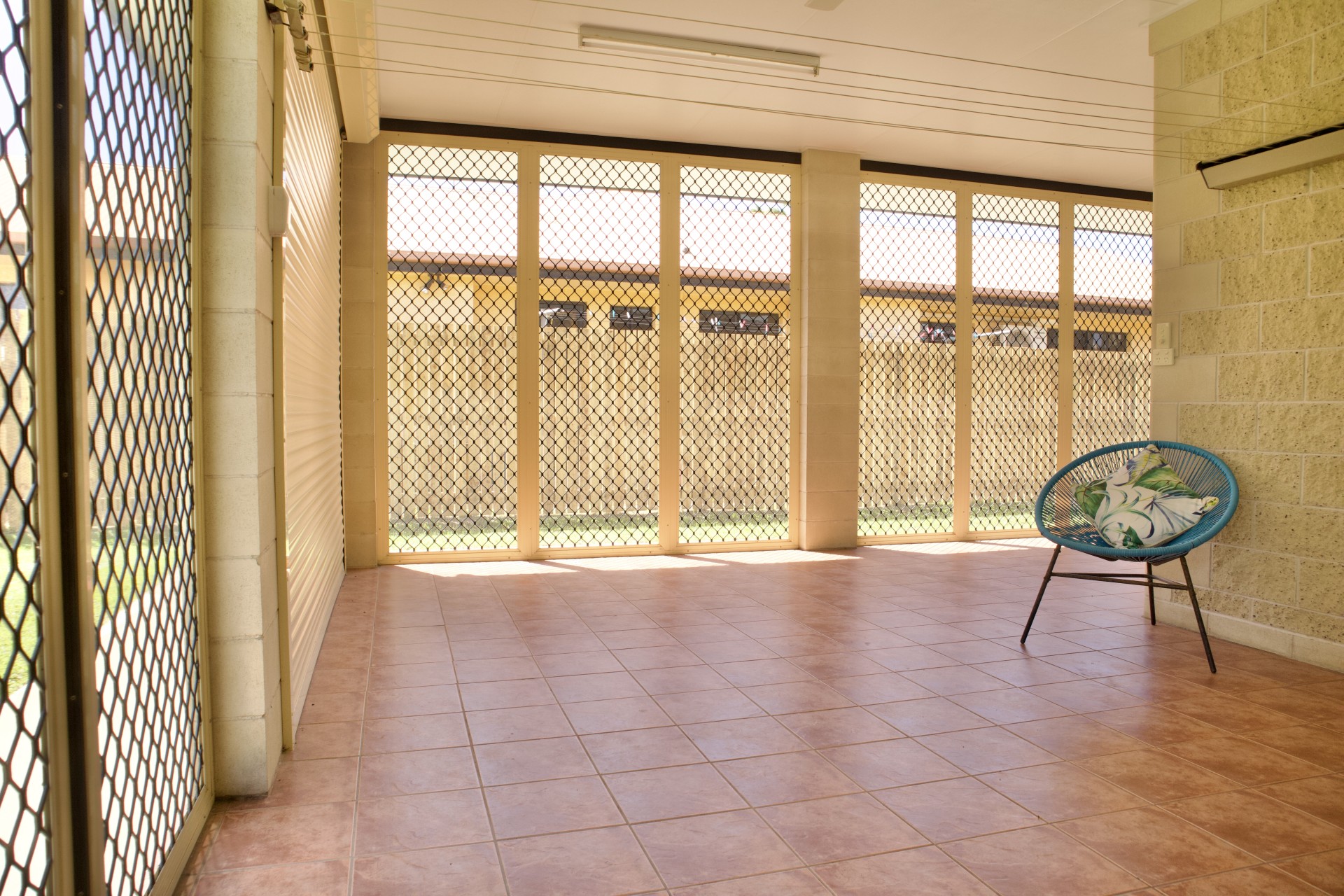 - Fully security screened, tiled entertaining area. Electric roller shutter at rear.