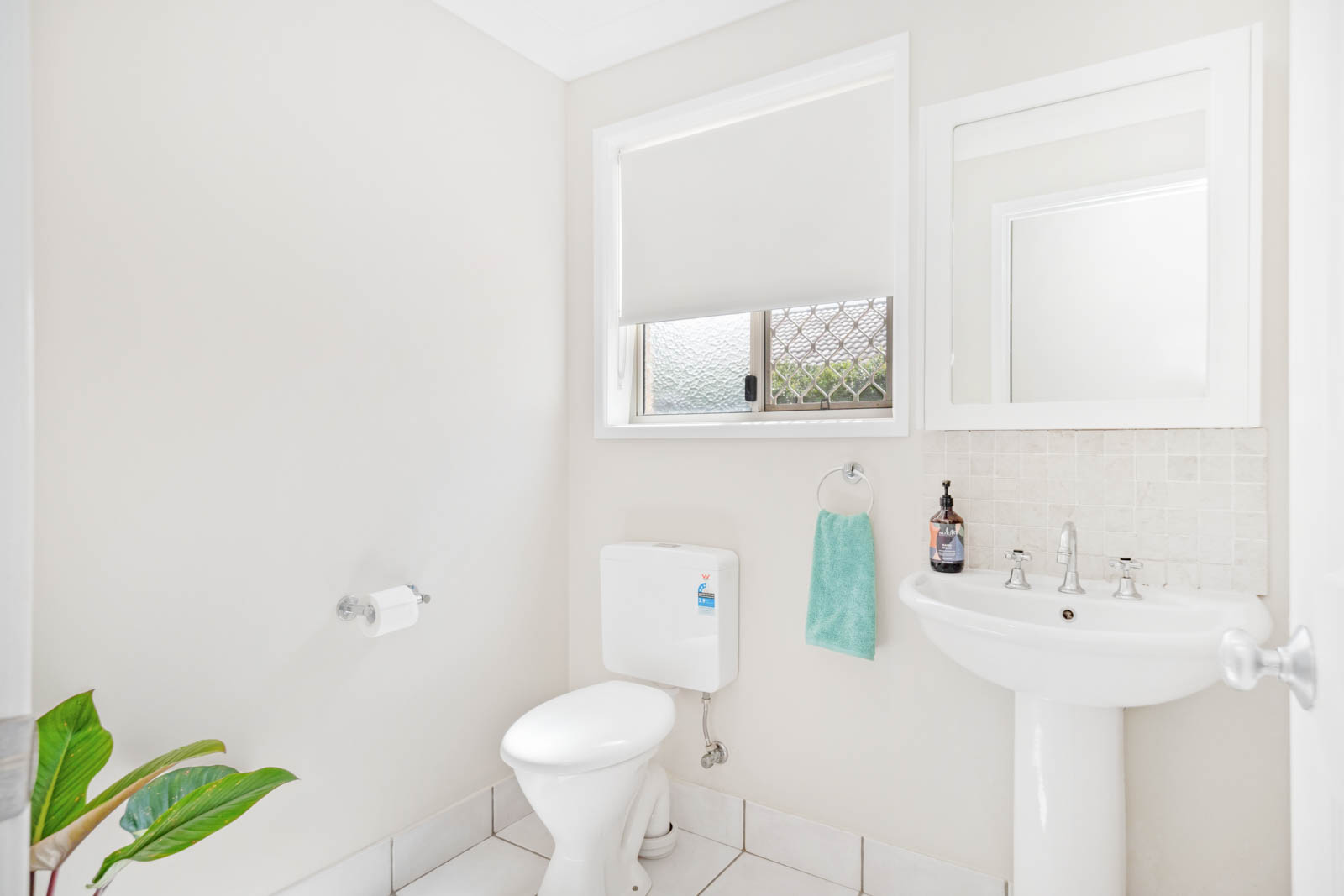 This half bathroom offers convenience and versatility when going about your day or when guests drop in.