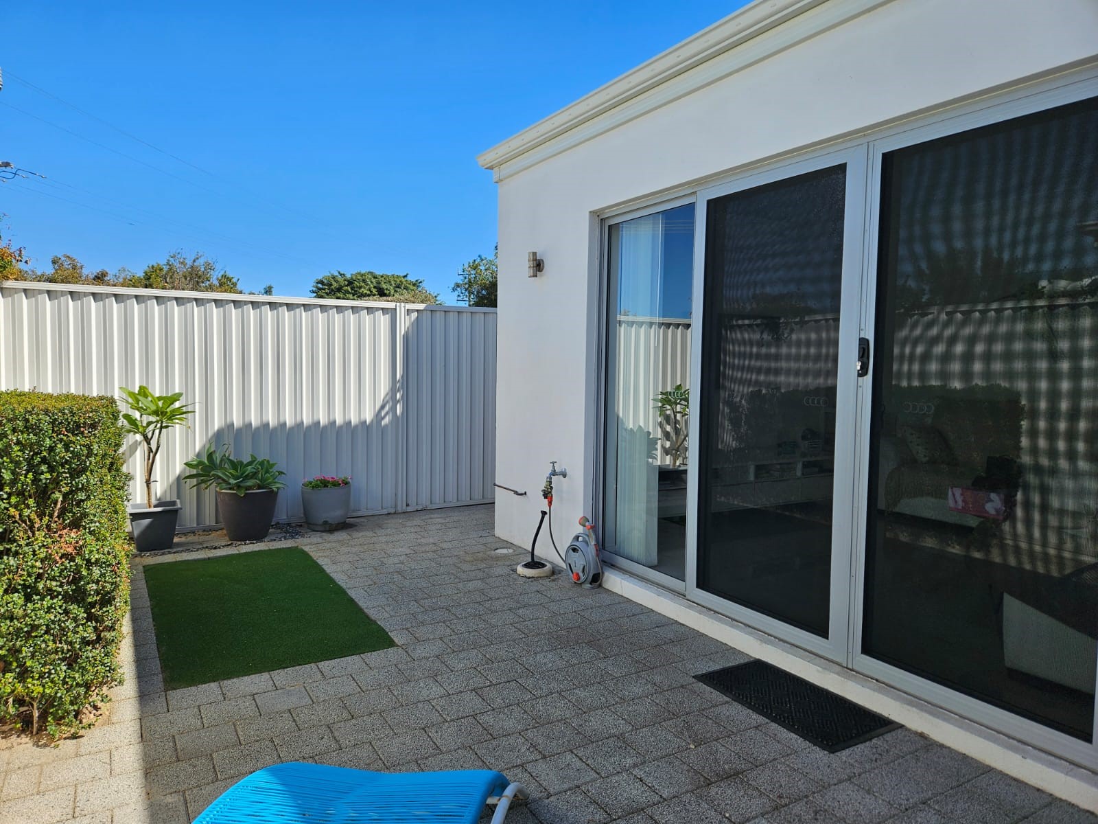 The neatly maintained group of seven villas have modern rendered elevations with zincalume roofs, and lovely wide paved driveways.