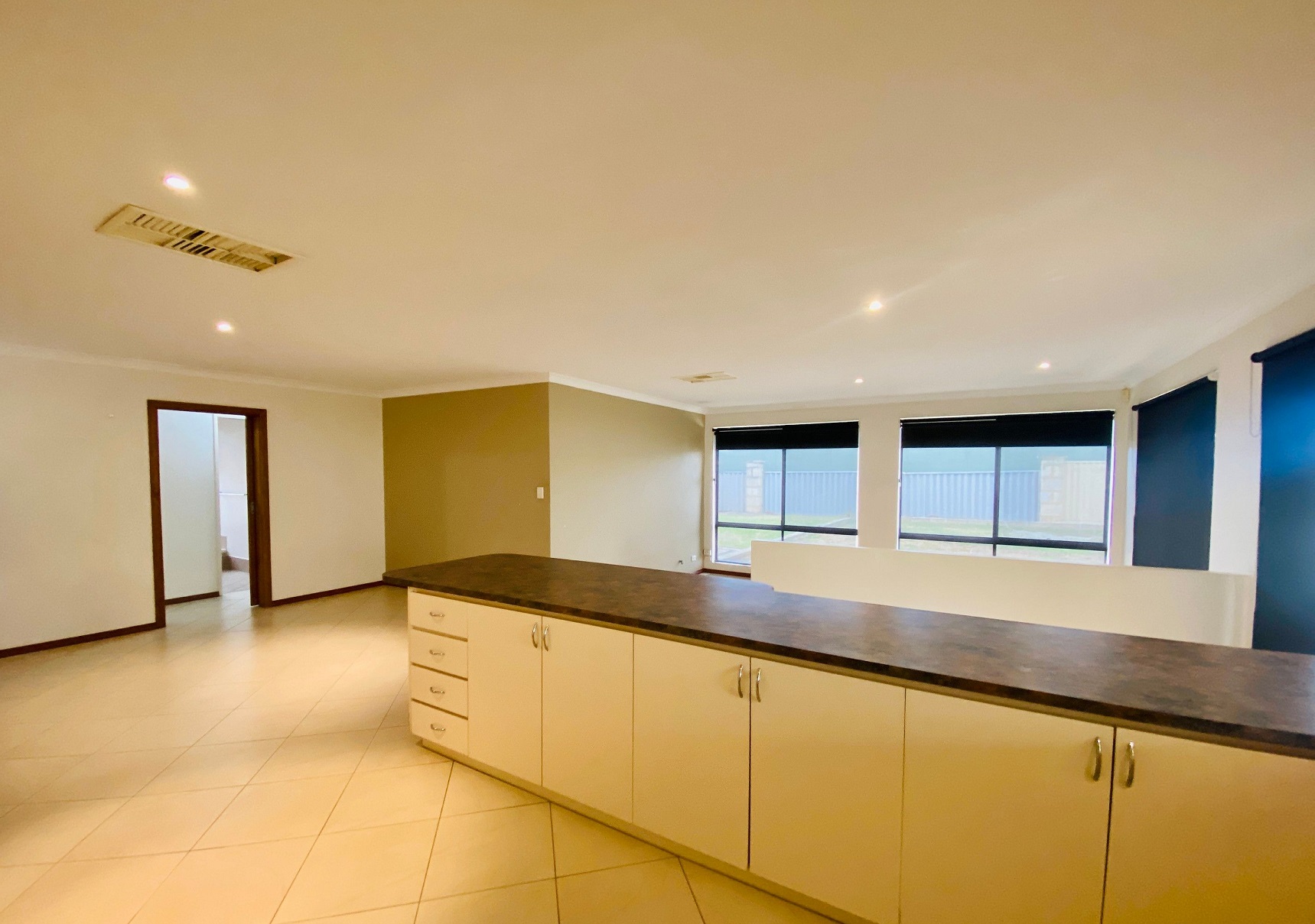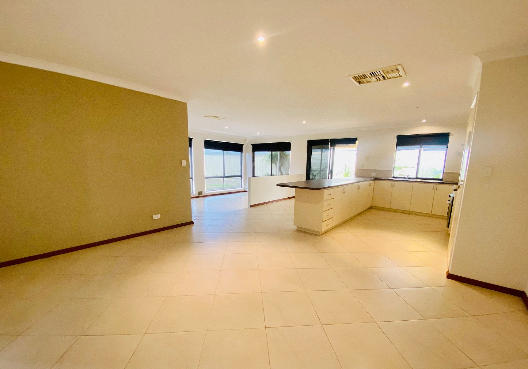 * Open plan living-dining-kitchen zone
