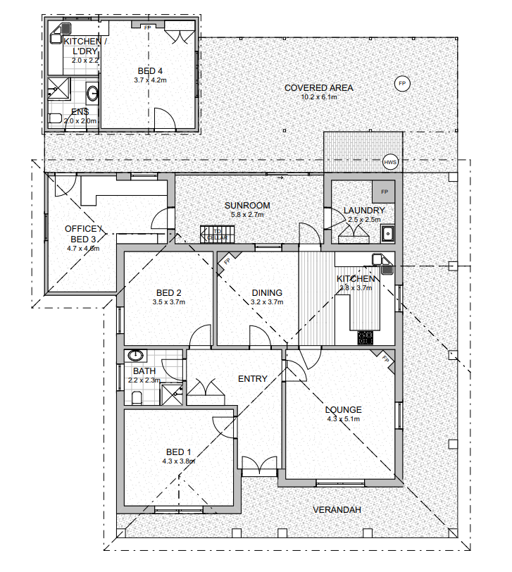 Accessed under cover from the home is a renovated, air conditioned, fully self contained 1 bedroom bungalow/granny flat/rental unit. Joining both house & bungalow is an expansive covered area for outdoor living & entertaining.