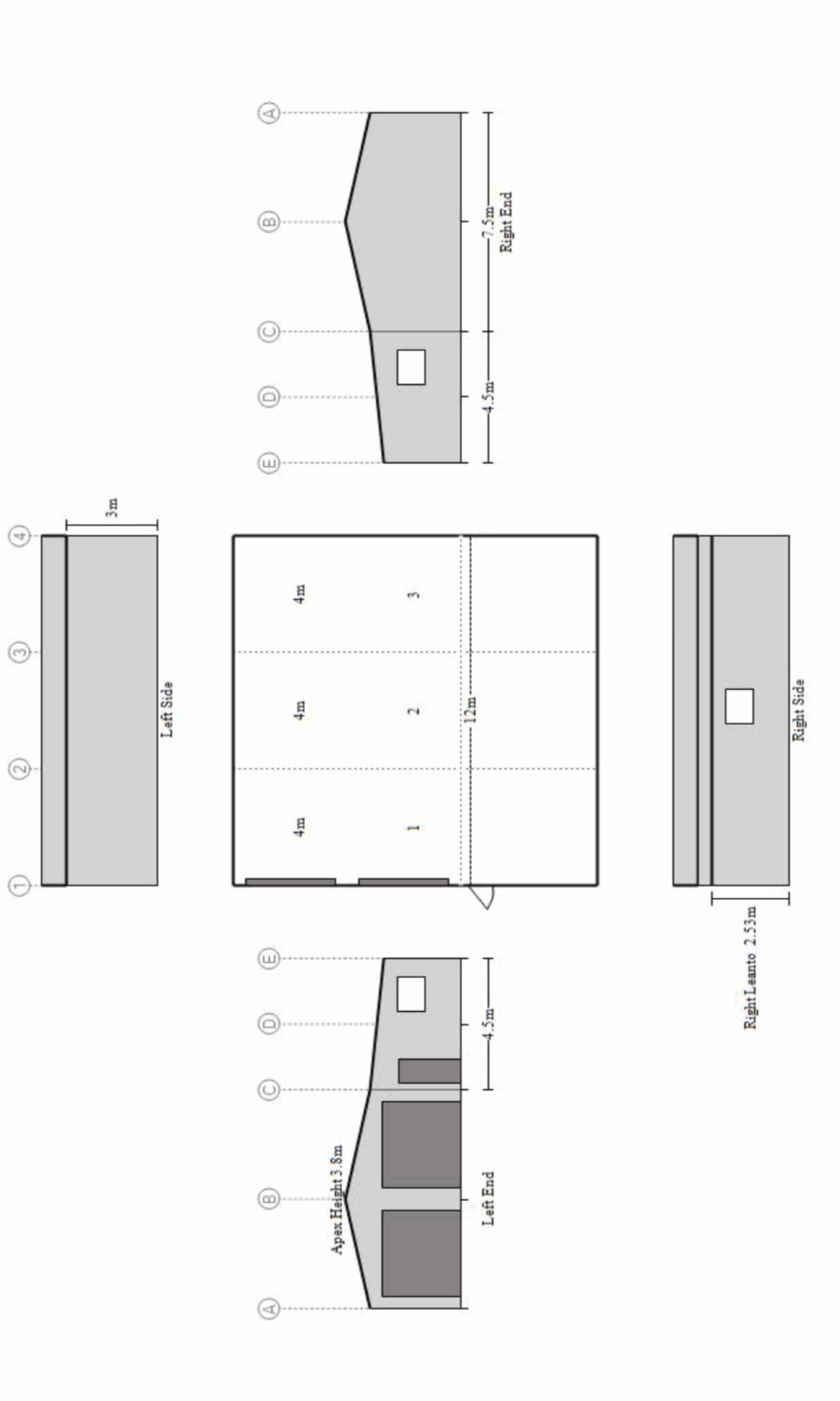 - 12x12m shed, concrete floor.