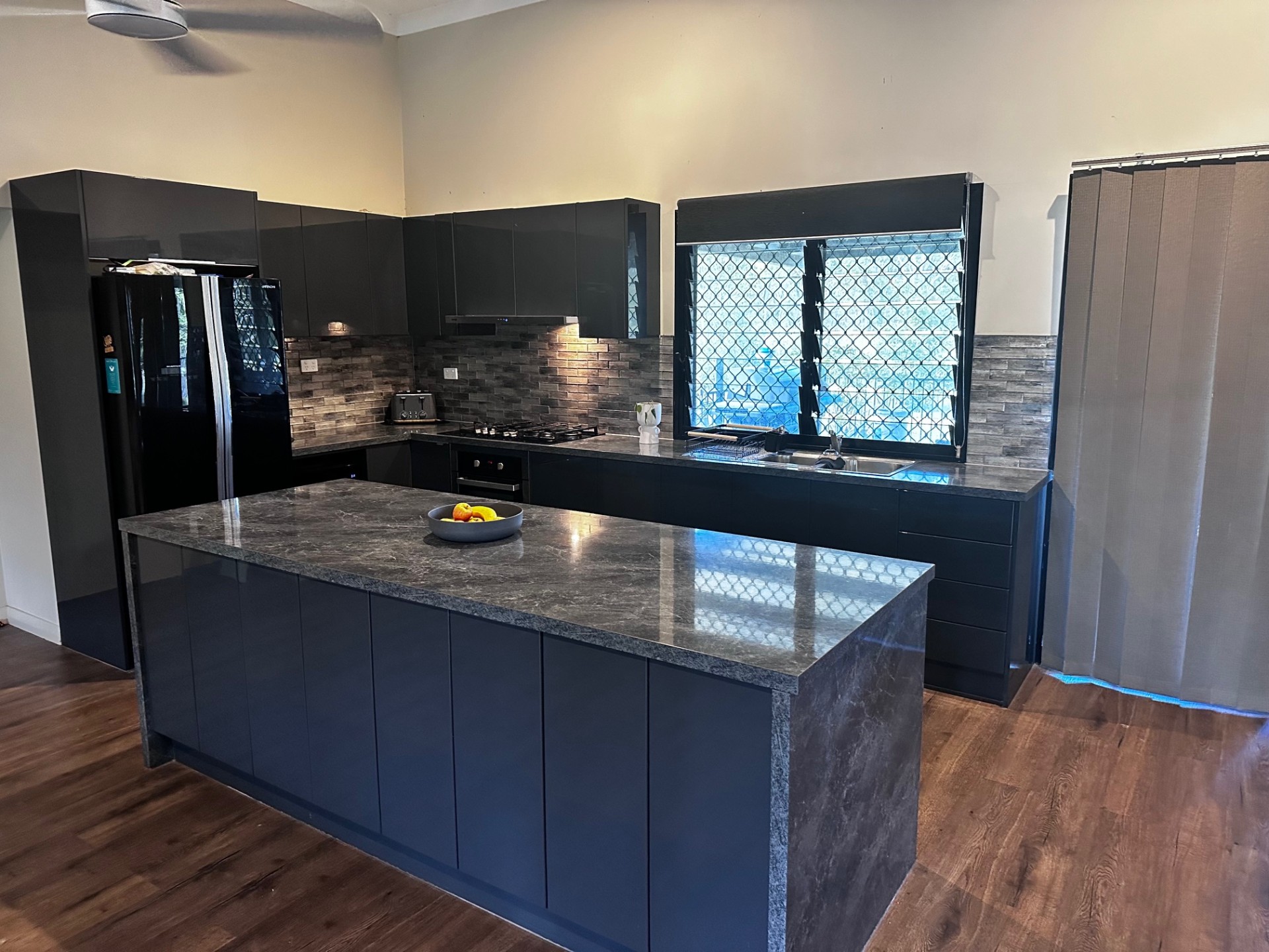 - Practical kitchen with a very large island bench, ample storage and gas cooking.
