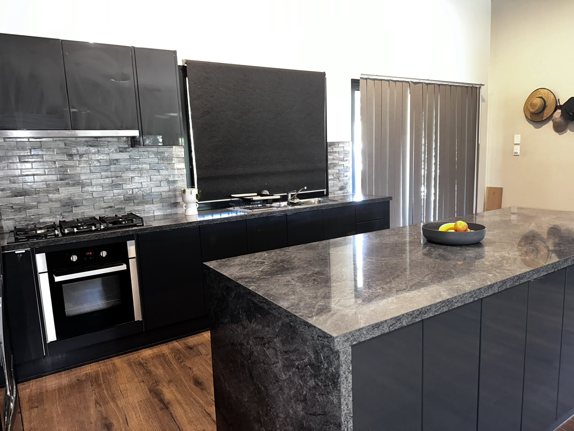 - Horizontal blinds custom made and fitted to living areas and all bedrooms.