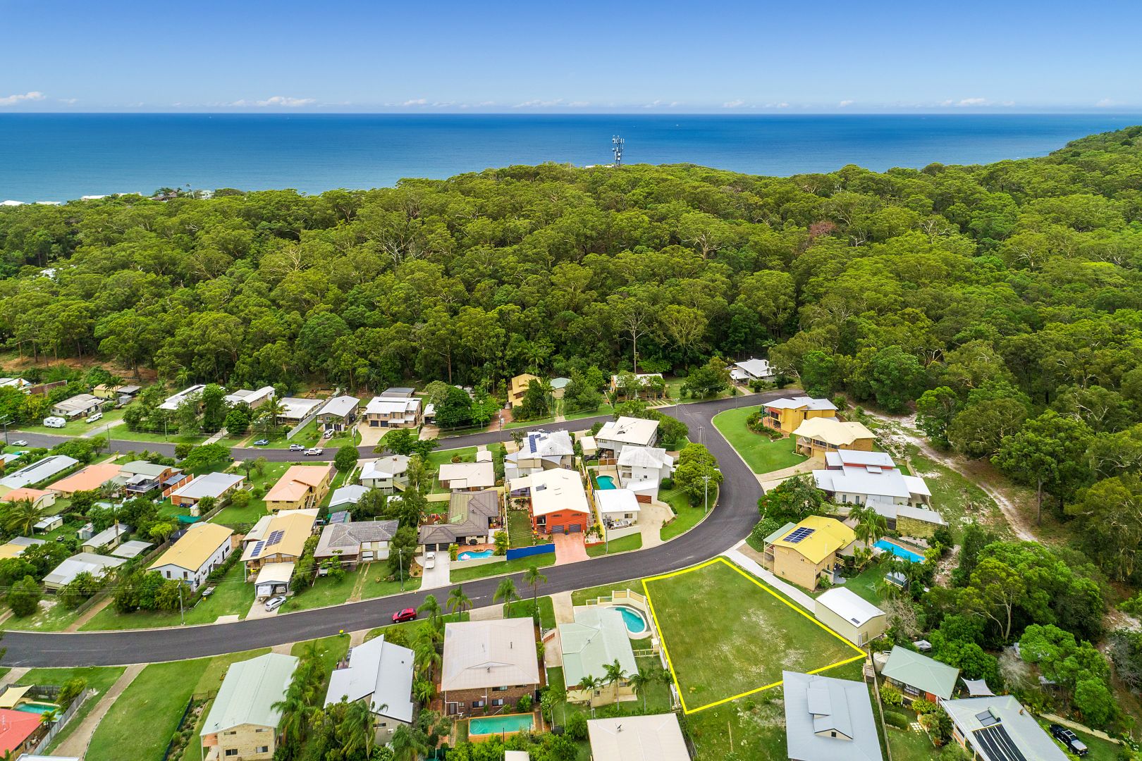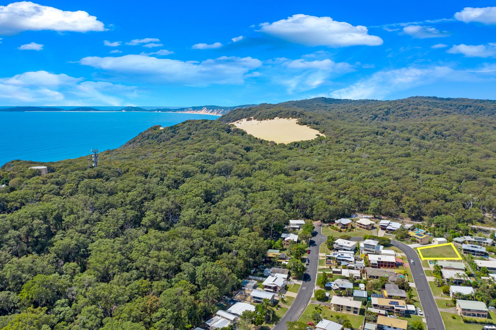 Saving the best to last. This spectacular, well-kept block of land is perched at the top of Rumbalara Avenue, enjoying 180-degree views over the Pacific Ocean, Fraser Island, and over the forest canopy to Great Sandy Straits. The elevated north facing aspect allows you to enjoy refreshing sea breezes and sun all day long. The real estate is situated in a tightly held pocket of Rainbow Beach where the residents know they are in the best location and supply is extremely limited.