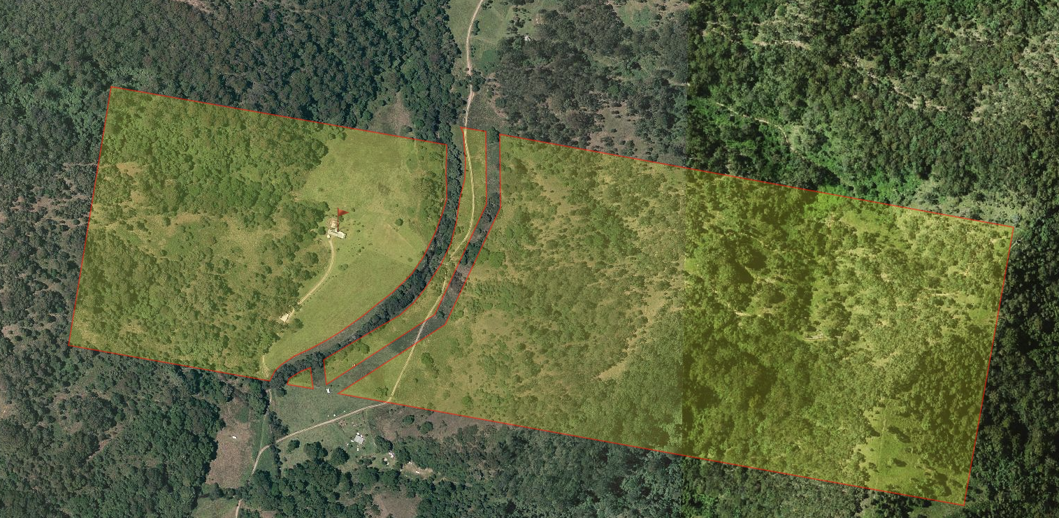 Approximately 3km of gravel road with some low-level creek crossings. The road is council-maintained, with the final 1km restricted to private use by landowners.