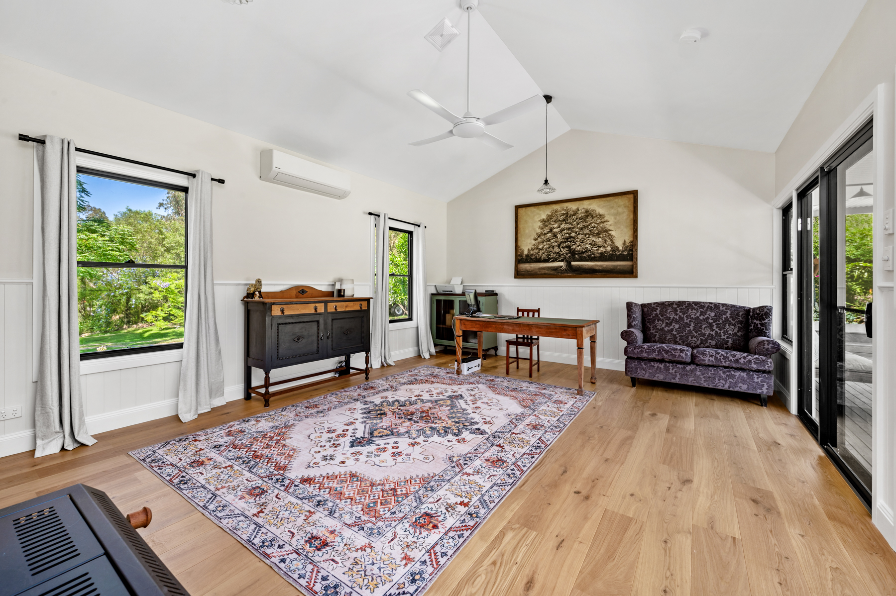 Bath, Fireplace(s), Modern Bathroom, Garden, Garden Shed, Rainwater Tank, Quiet Location, Views, Nature Property, Air Conditioning, Polished Timber Floors, Study, Grey Water System, Solar Panels, Living Area, Deck