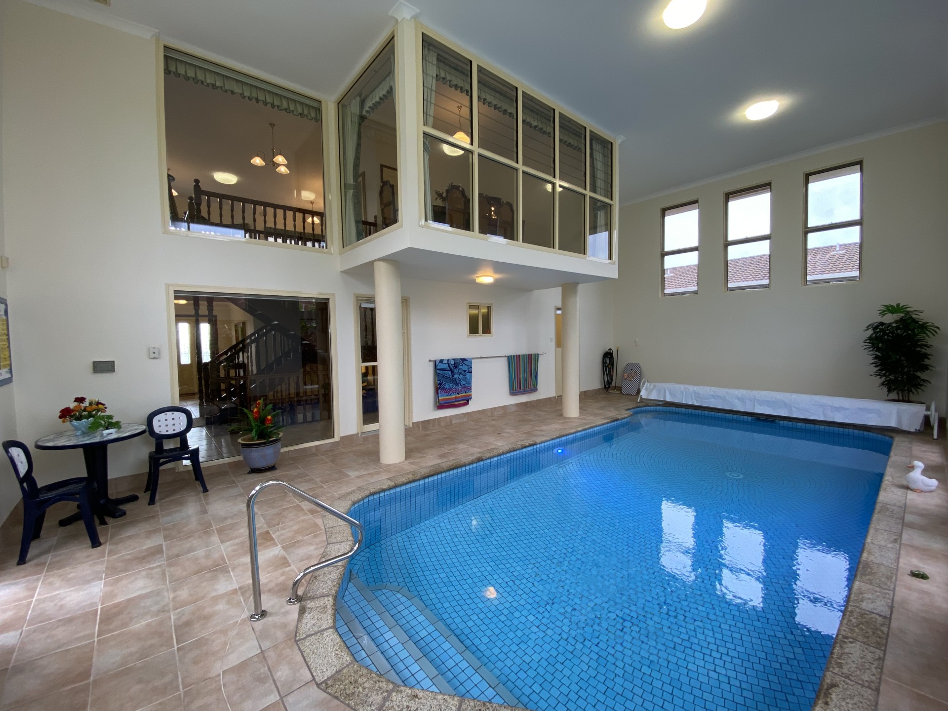 • Swim all year-round. Maintenance free heated indoor saltwater pool *
