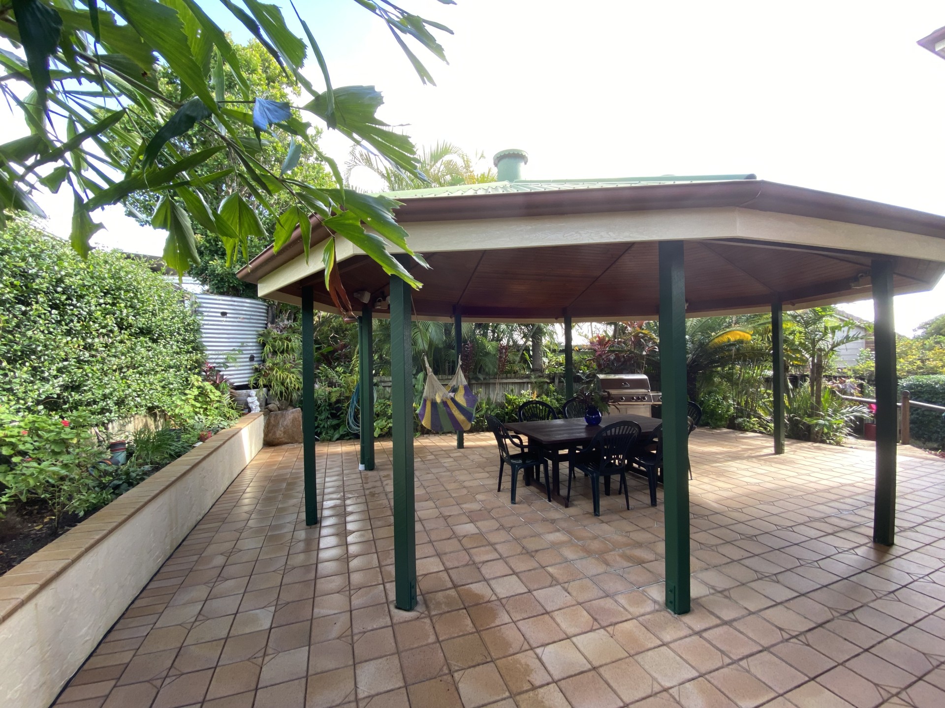 • Enormous ten-sided Heritage style gazebo doubles as an all-weather clothesline