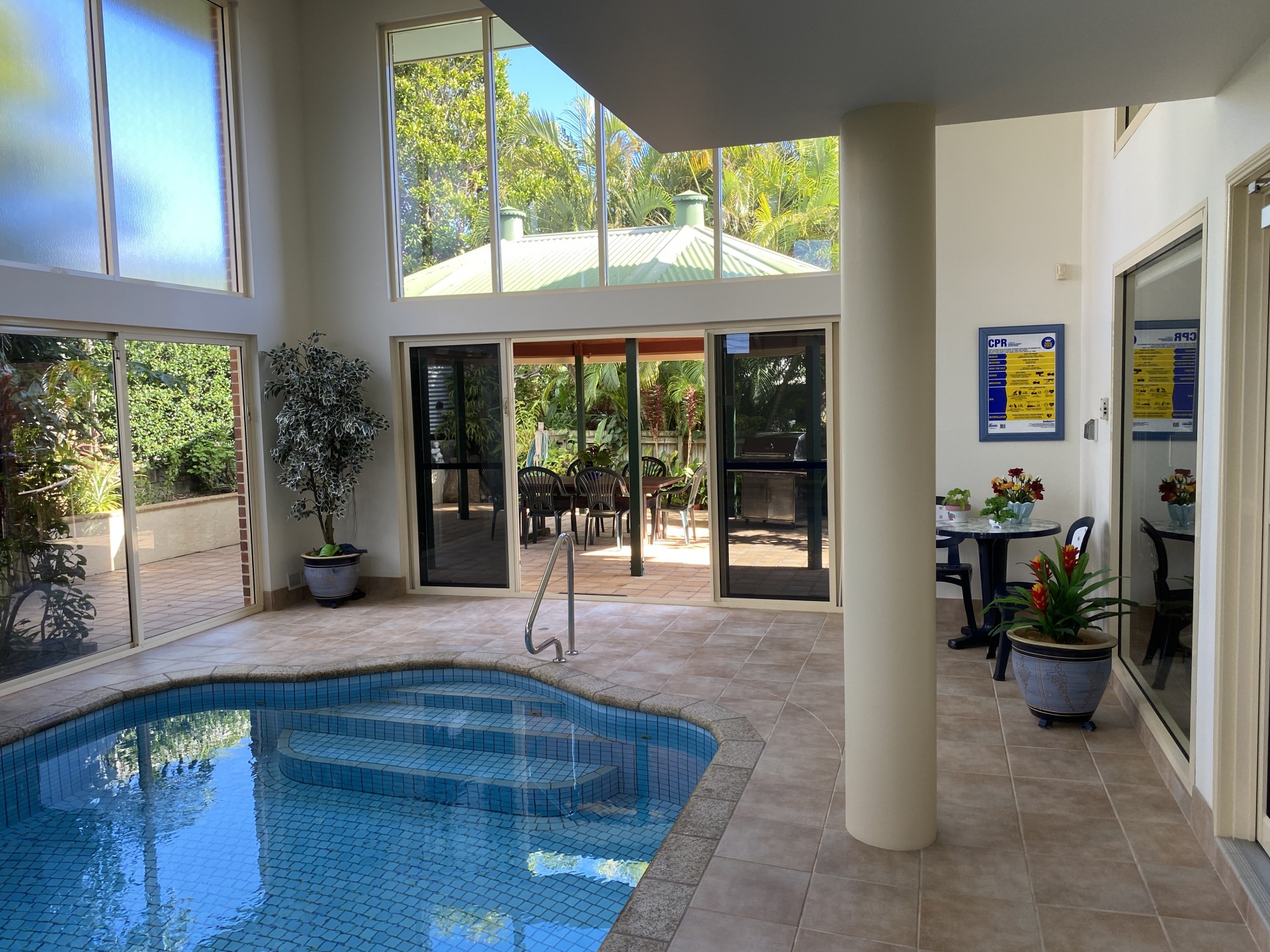 The quirky and novel features, like the HEATED INDOOR POOL and interior walls of glass, offer a spectacular connection between indoors and outdoors. Views of the bay or lush gardens greet you looking out of any window. Bedroom doors open direct onto the verandahs for that morning yawn and stretch or that cool afternoon drink.