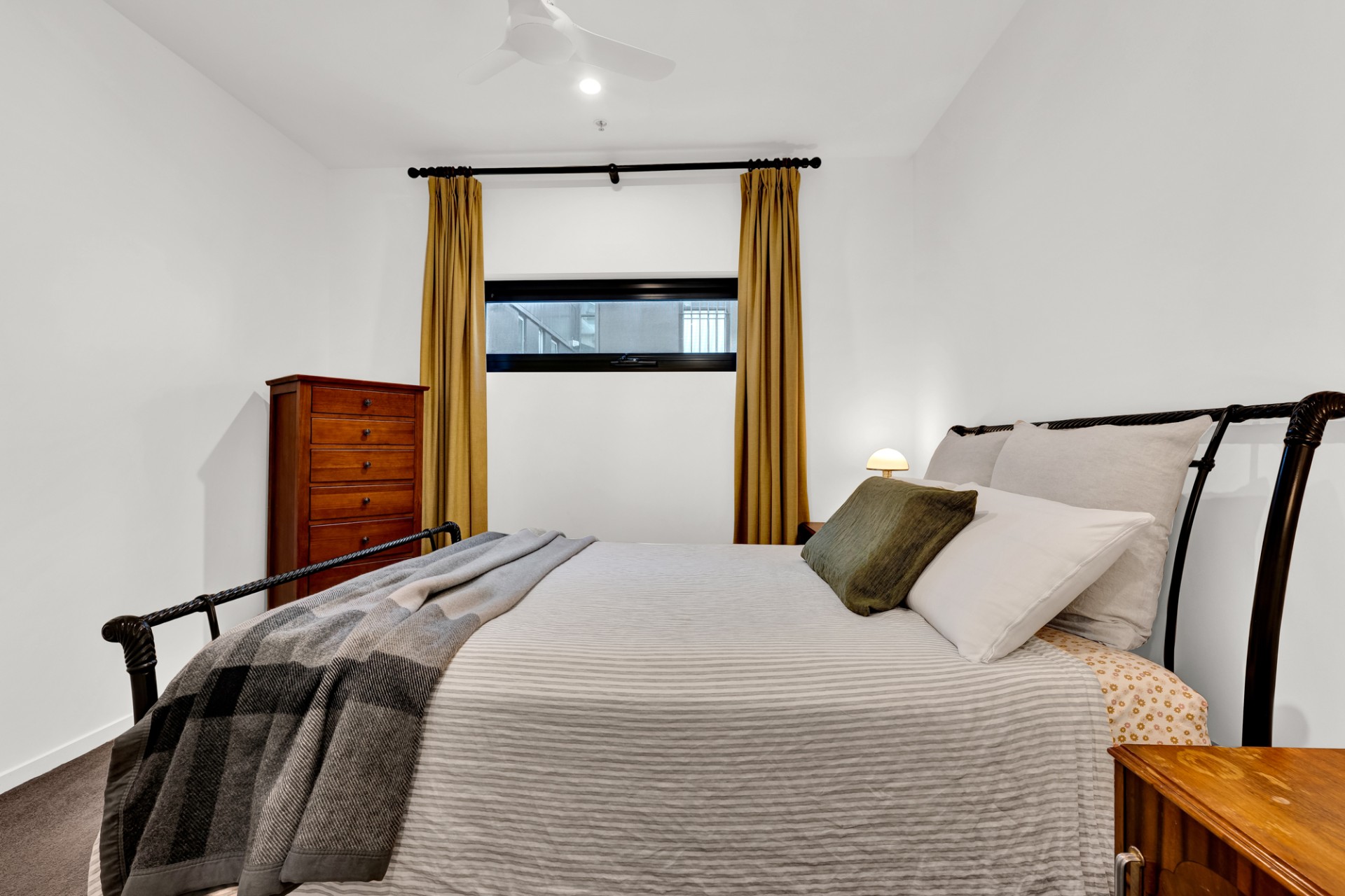 Generously proportioned, this corner apartment houses two bedrooms (walk-in robe to main, ceiling fans and blockout window dressings to both), two tiled bathrooms (oversized showers), study nook, tall ceilings, oak flooring and wool carpets, custom built-in shelving, secure intercom, and reverse cycle air conditioning. Walk through to the light-flooded kitchen, dining and living area, with stone benchtops, Miele appliances, dishwasher, walk-in pantry, and enjoy the large balcony overlooking mature trees and heritage listed surrounds.