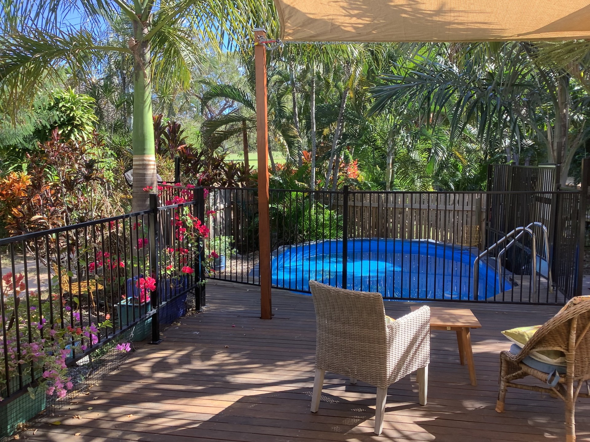 On warm tropical evenings walk out onto the deck and straight into the pool. Only two years old the deck and pool were specifically designed for super easy access and entry.