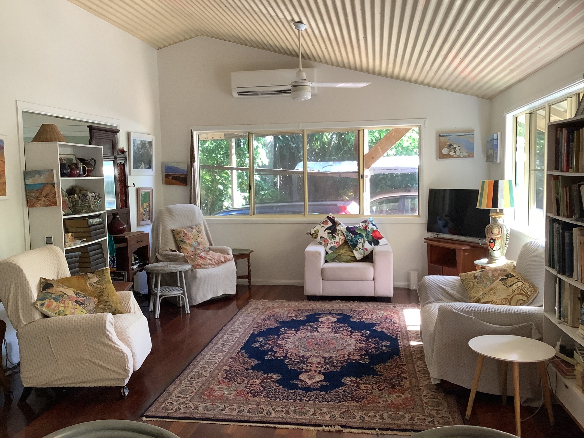 A large air conditioner and fans in every room keep a cool house throughout the year.
