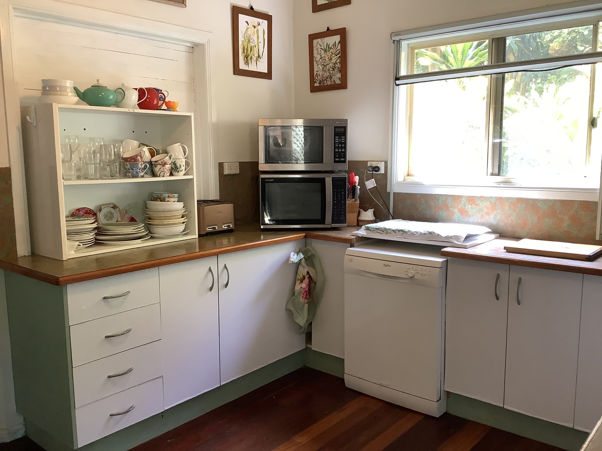 The kitchen is equipped with quality appliances including microwave and convection / microwave ovens. A 4 stand induction cooktop sits atop the dishwasher. There is ample underbench cupboards with potential to add more wall cupboards.