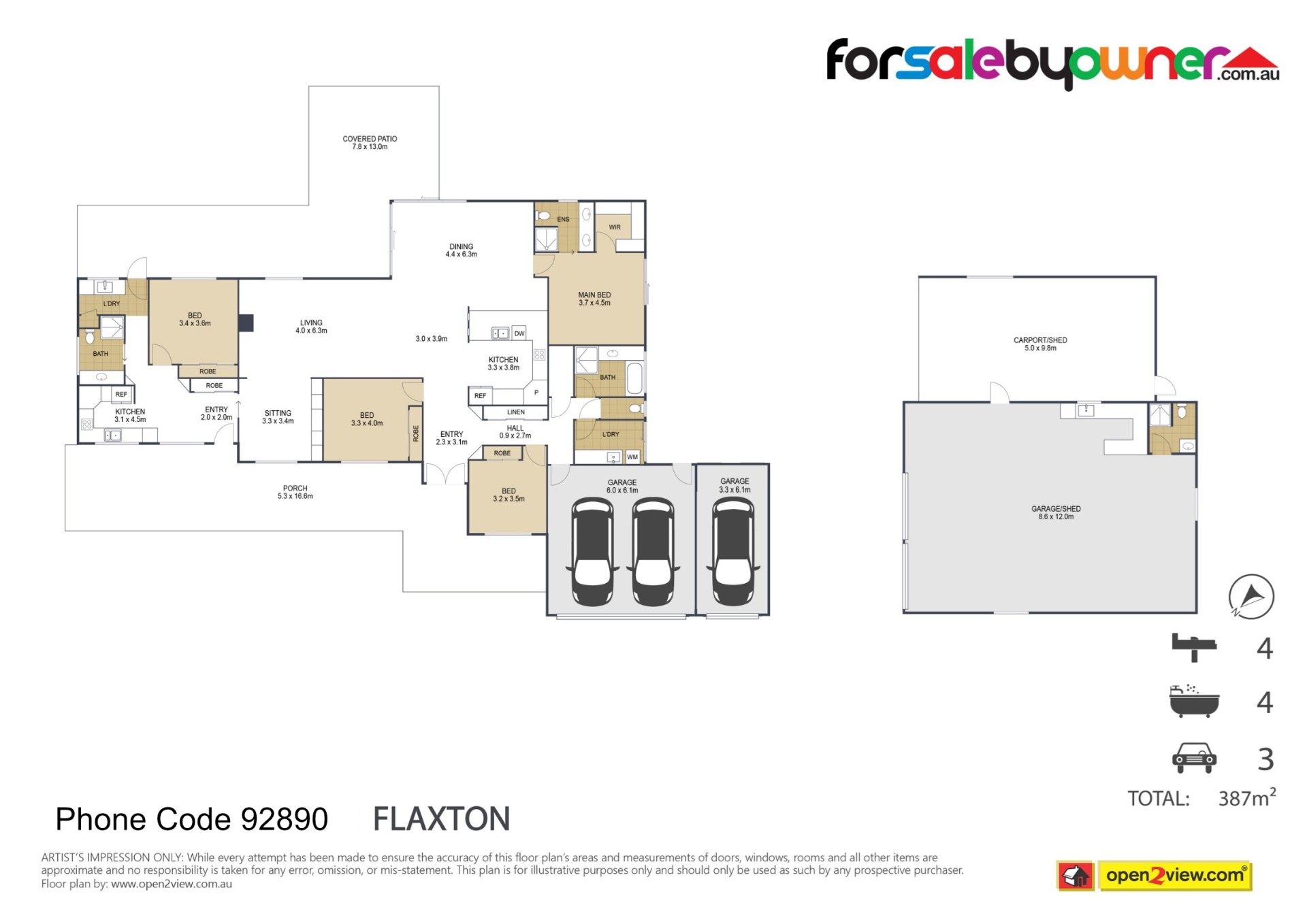 b. (9.8 x 5 m which is open at the front for a caravan or open work area);