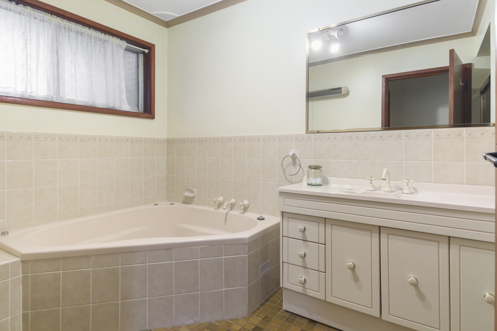 Downstairs to 4 double sized bedrooms. Master bedroom has its own ensuite and built in robe. All other bedrooms have BIW, Large rumpus room also with built in bar. Can be used for home office for those who work from home. Rear paved BBQ area and small yard. This is a great solid home but needs a reno, through out as it is very dated.
