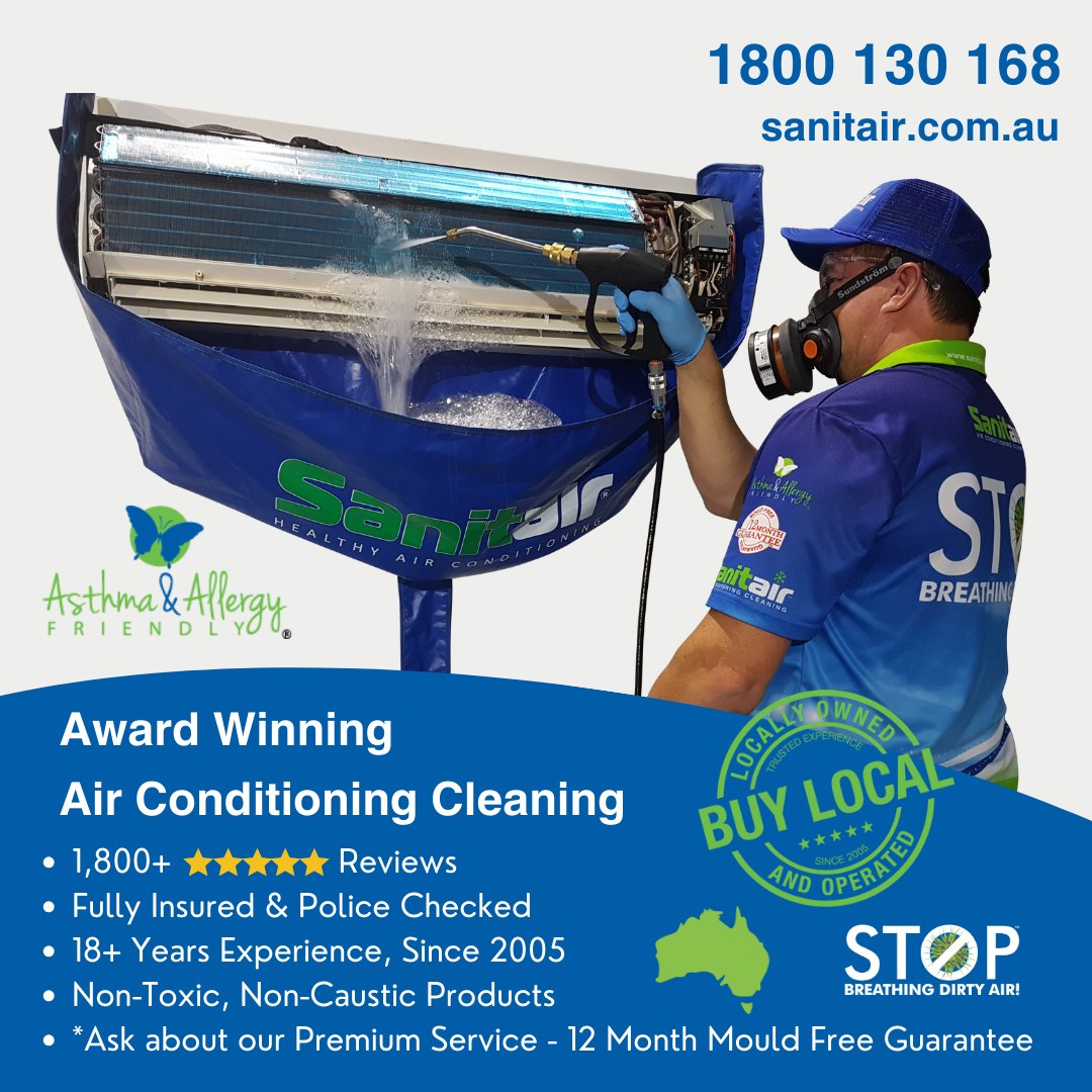 Sanitair is the largest and oldest specialised HVAC Hygiene service provider in Australia. Sanitair Australia has been providing air conditioning cleaning and sanitising services for a loyal and growing customer base since 2005. Sanitair customers include Australian Government, Mining Sector, Prisons, Schools Private & Public, Aged Care, Hospitals & Medical Practices & Facilities, Hotels, Motels & Resorts Australia Wide. Sanitairs proprietory products are Non Caustic, Non Toxic and support their Nationwide 12 Month Mould Free Guarantee.