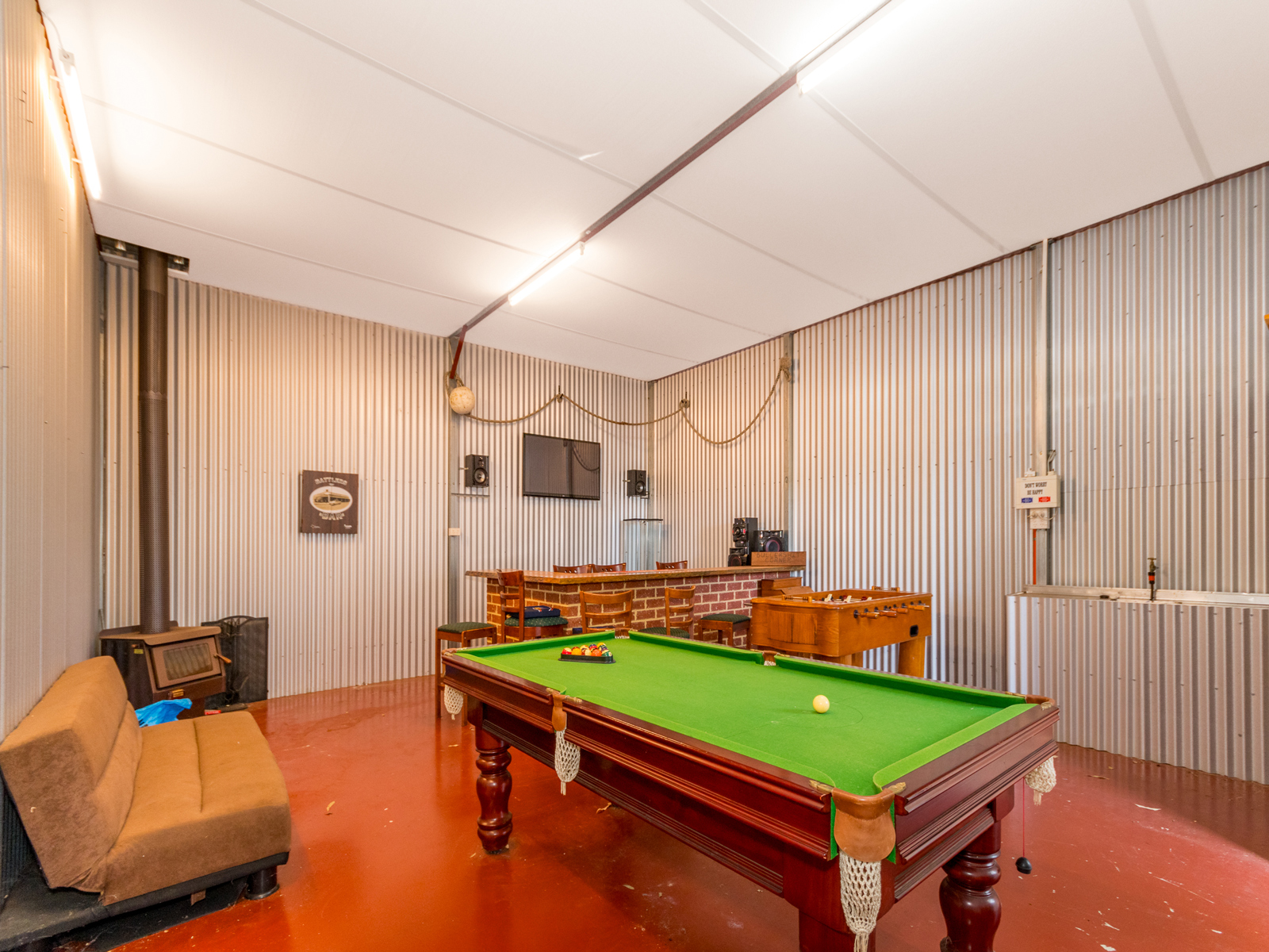 • Man cave with toilet, water, power and wood fired heater.