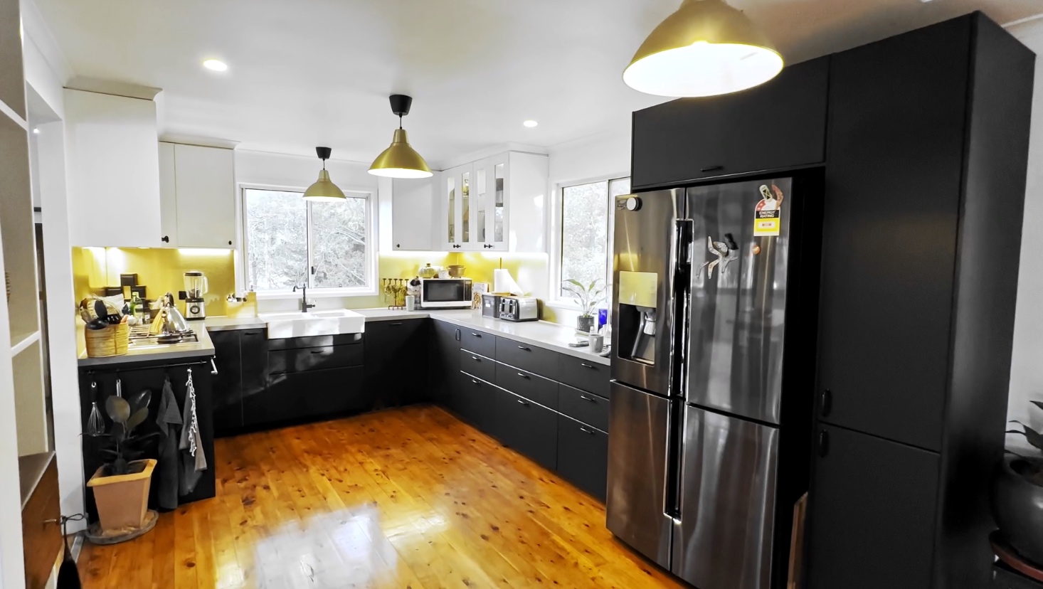 A modern kitchen with top-notch appliances, like a steam oven and Bosch dishwasher, perfect for whipping up meals with your homegrown produce.