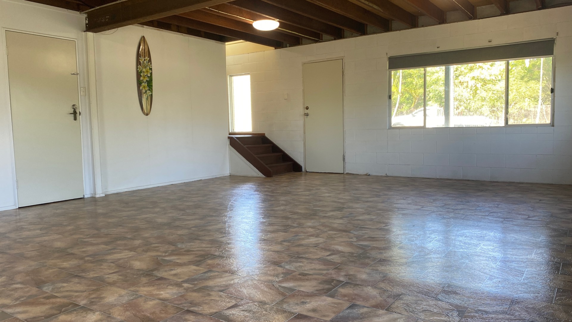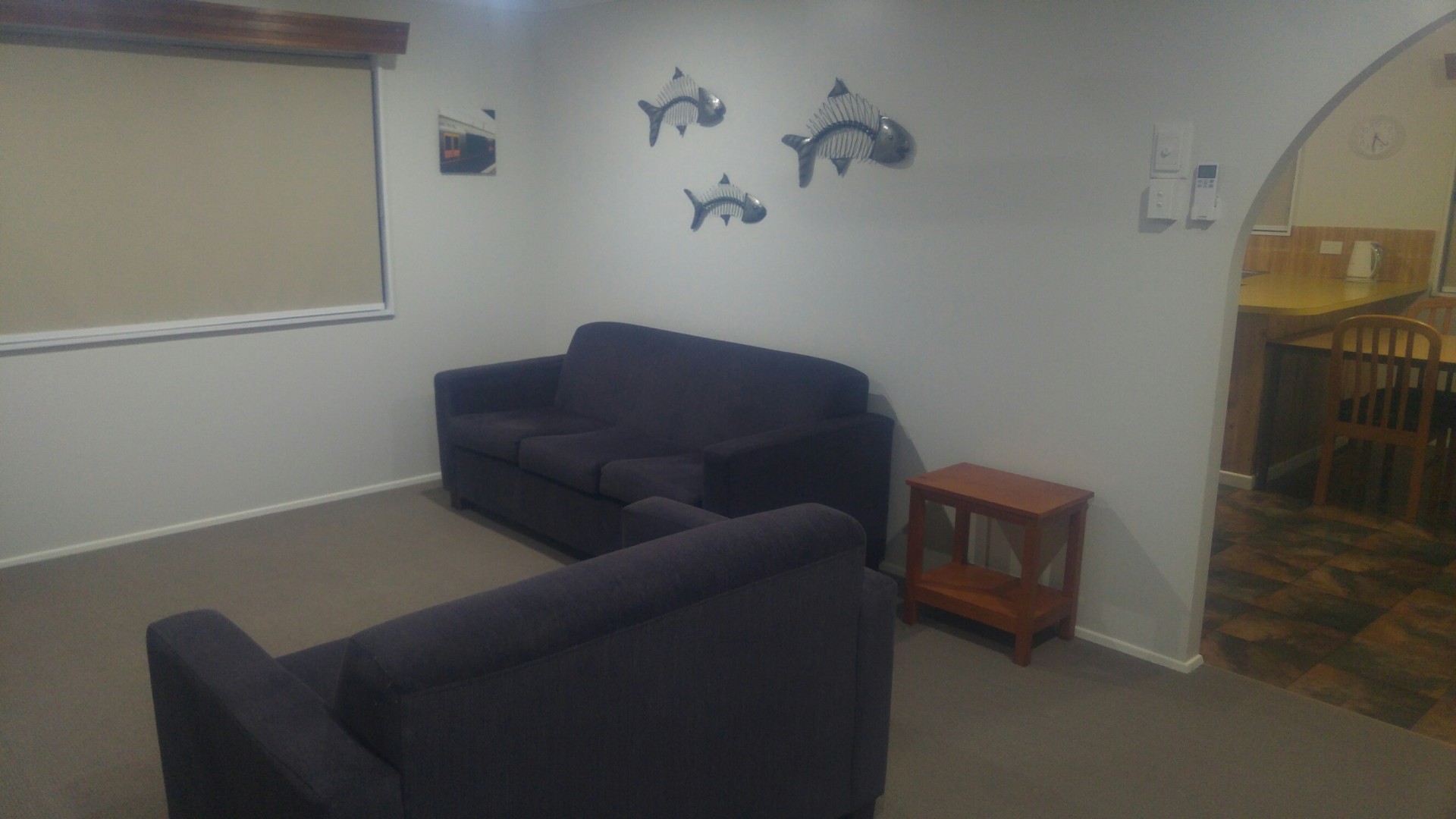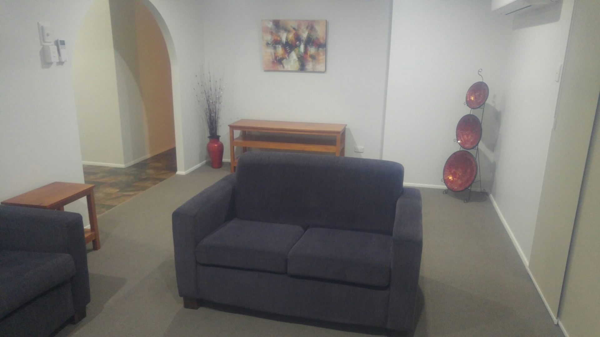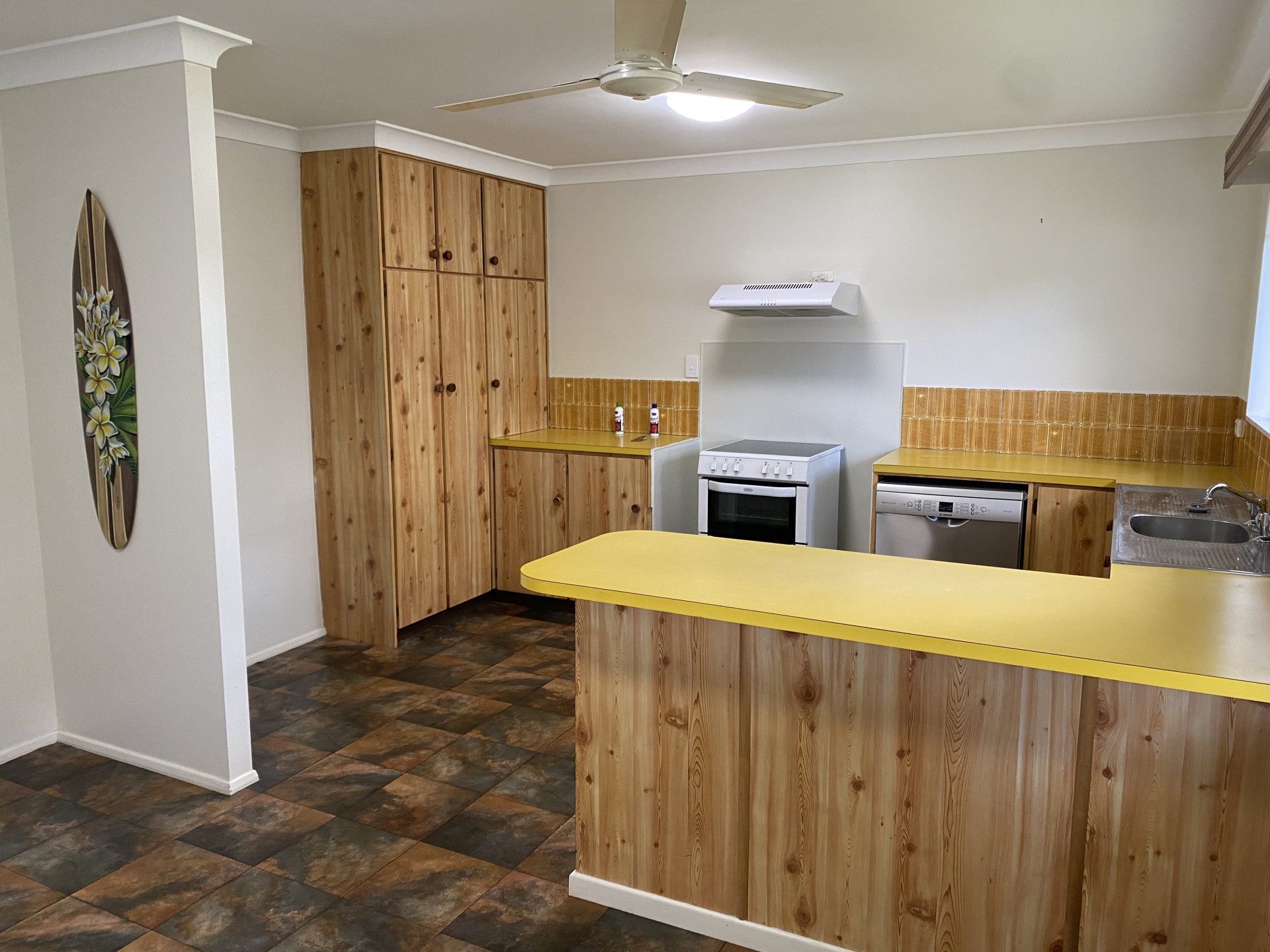 Floors. Carpeted lounge, hallway and bedrooms. Vinyl in the kitchen, dining room & upstairs wet areas.