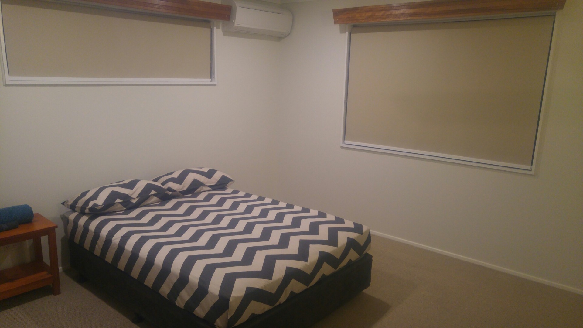 Split system air conditioning in living area and 2 bedrooms. The other 2 bedrooms have window mounted air conditioning.