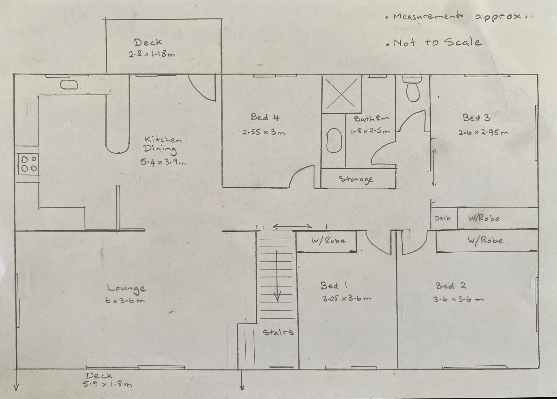 Solid, well built 4 bedroom 2 storey home on large level block with internal and external access to upstairs level. Very tidy interior. Primary living areas are upstairs. Older style kitchen but still in very good order, with plenty of storage. Separate toilet upstairs.