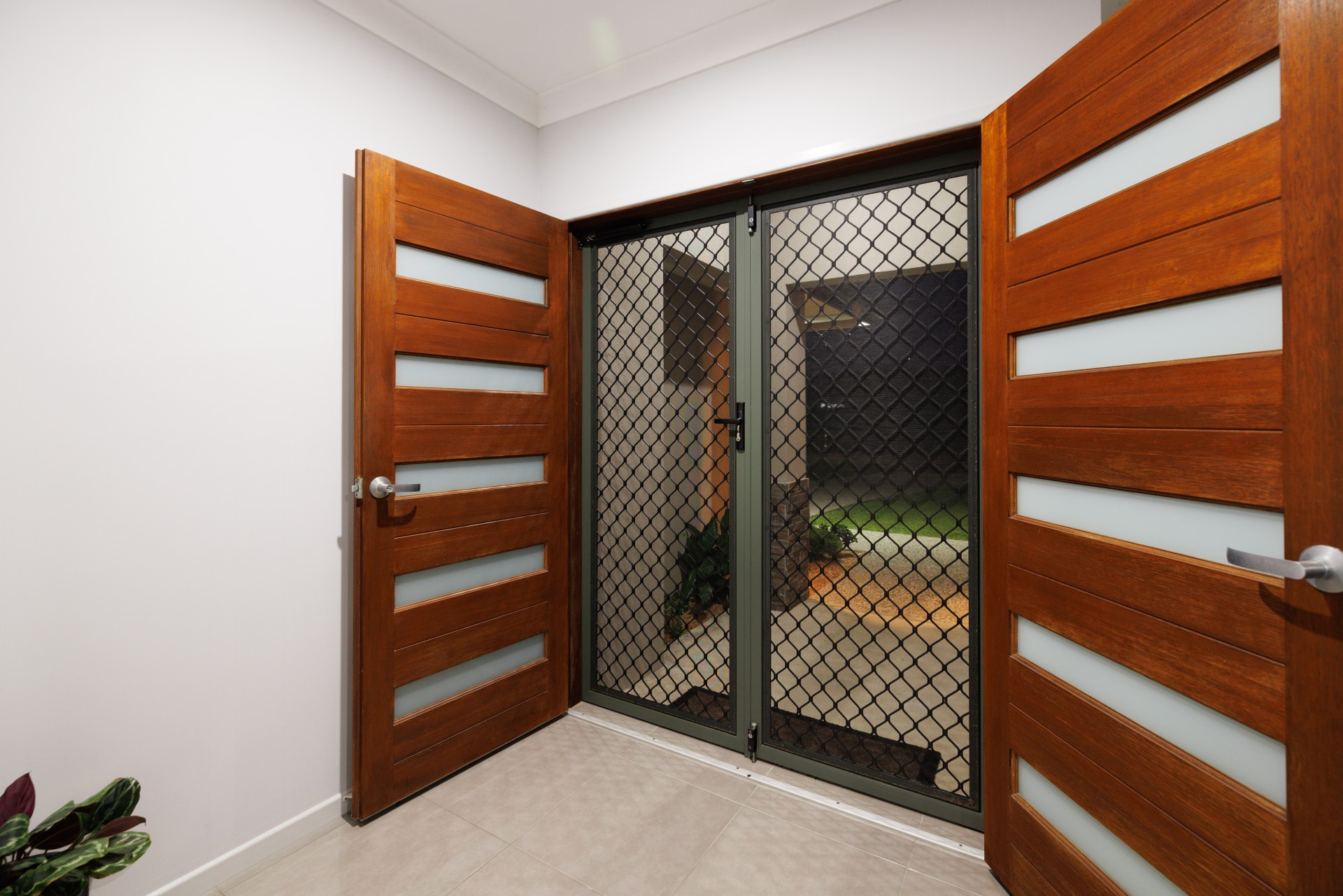 As you arrive at this property you are greeted with beautiful, tropical gardens. An exposed aggregate driveway leads to a two-bay remote-controlled garage, while an aggregate path leads to the entrance with two large timber front doors that enter into an open plan living area.