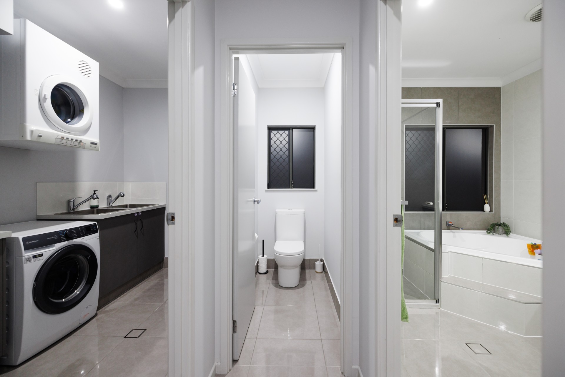 • Fully tiled bathrooms with floating cabinetry and extraction fans