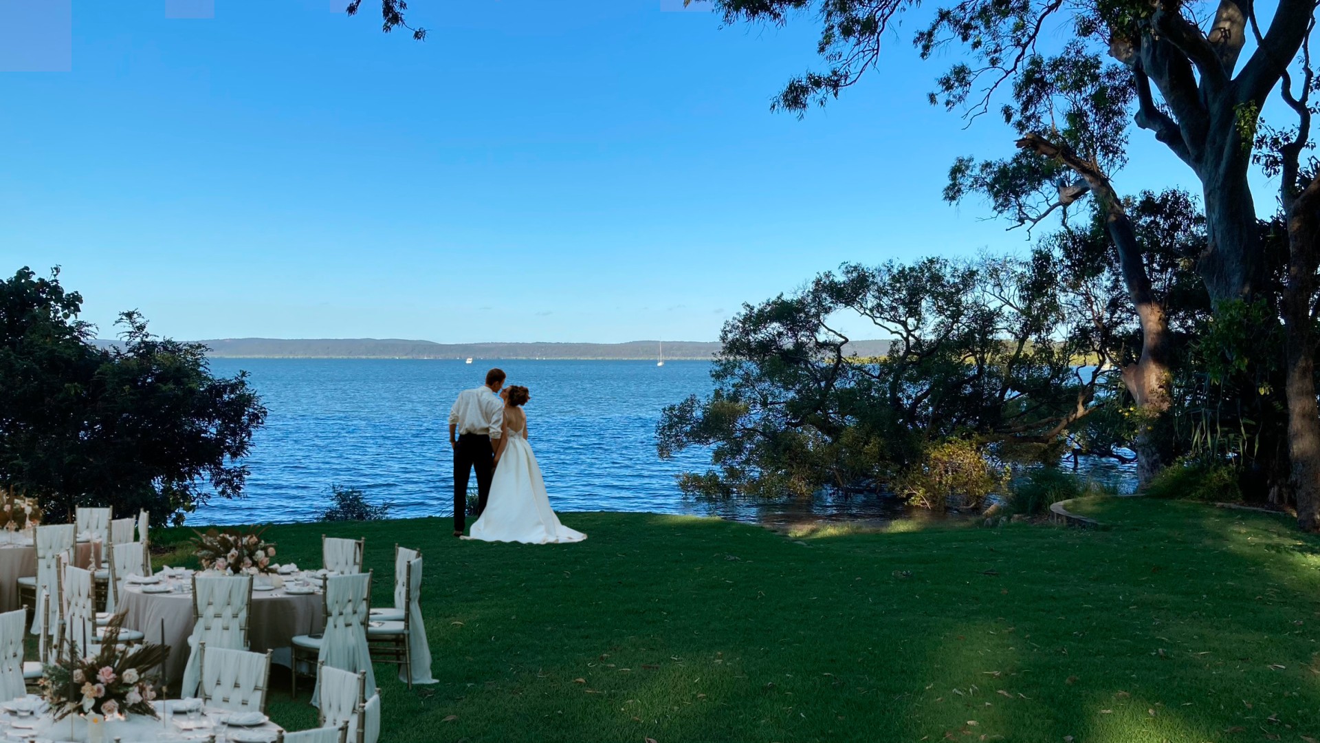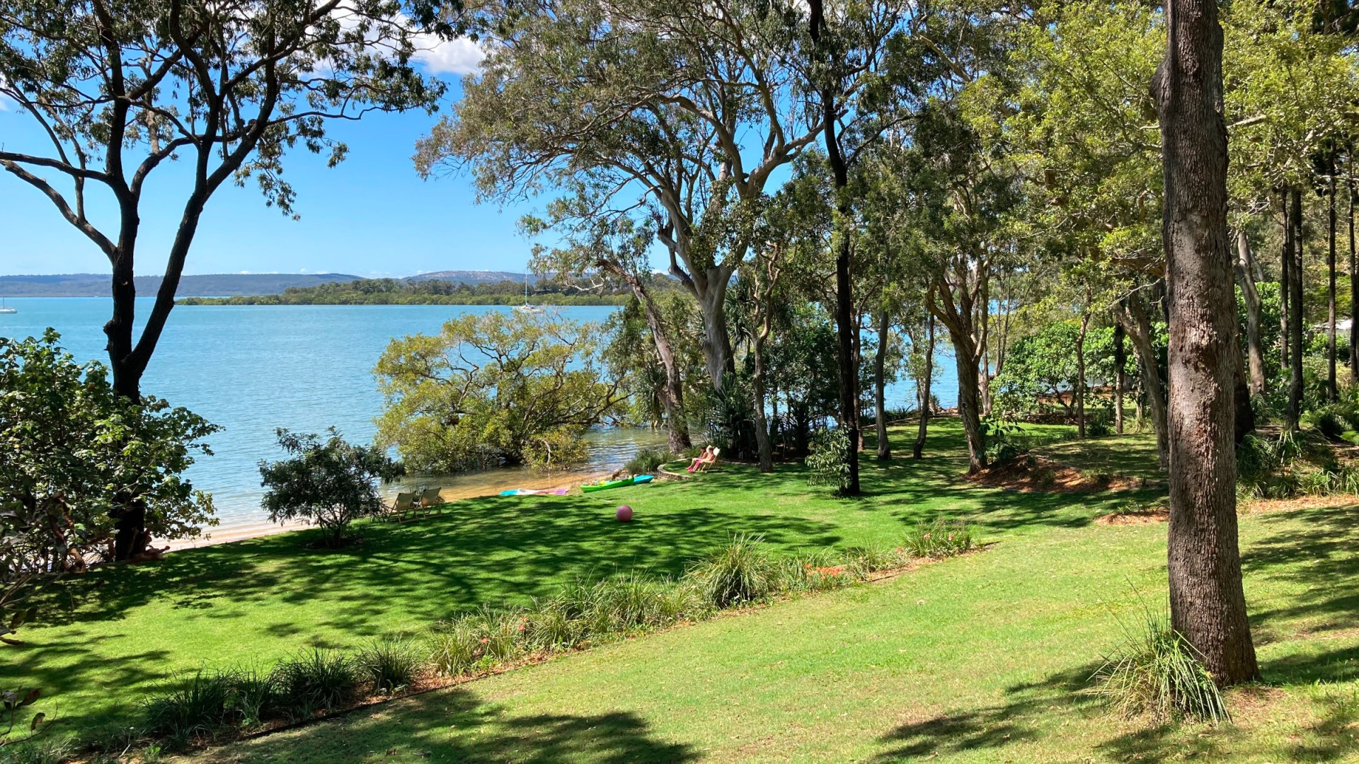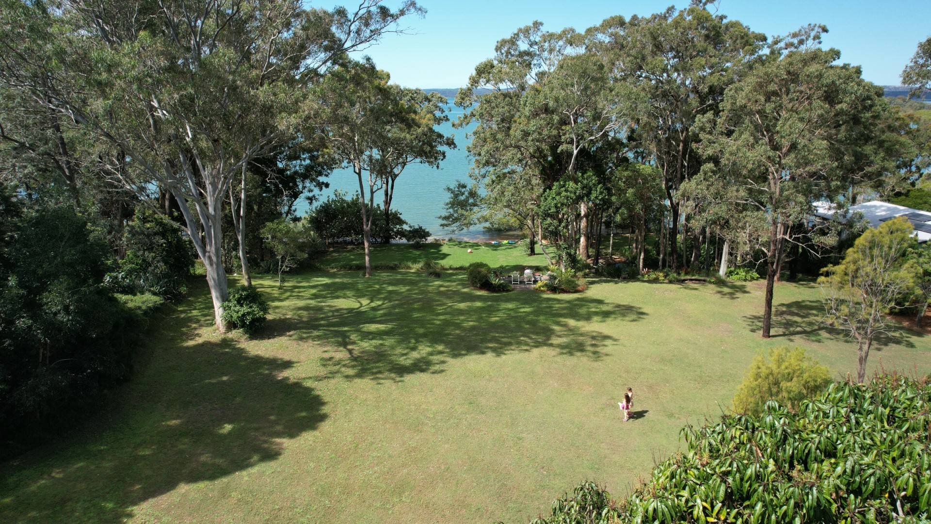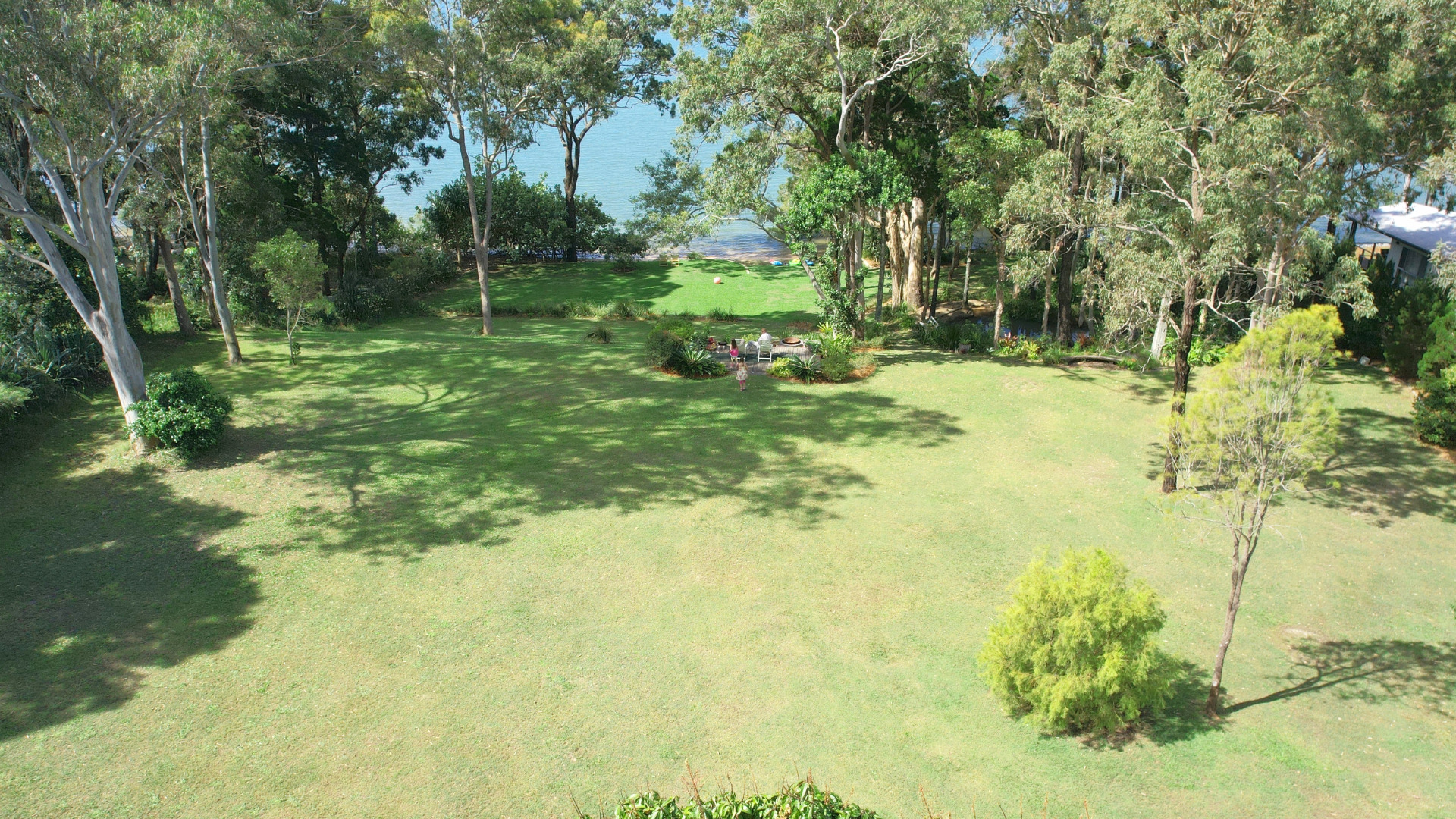 3. The building platform slopes gently down to perfectly level waterside terraces with sweeping lawns and established landscaping. The waterside terraces will seamlessly accommodate any activity: a fun afternoon with the kids on a zip line; a game of volleyball, petanque or croquet with your guests over a barbie; or a stunning wedding reception for a hundred guests.
