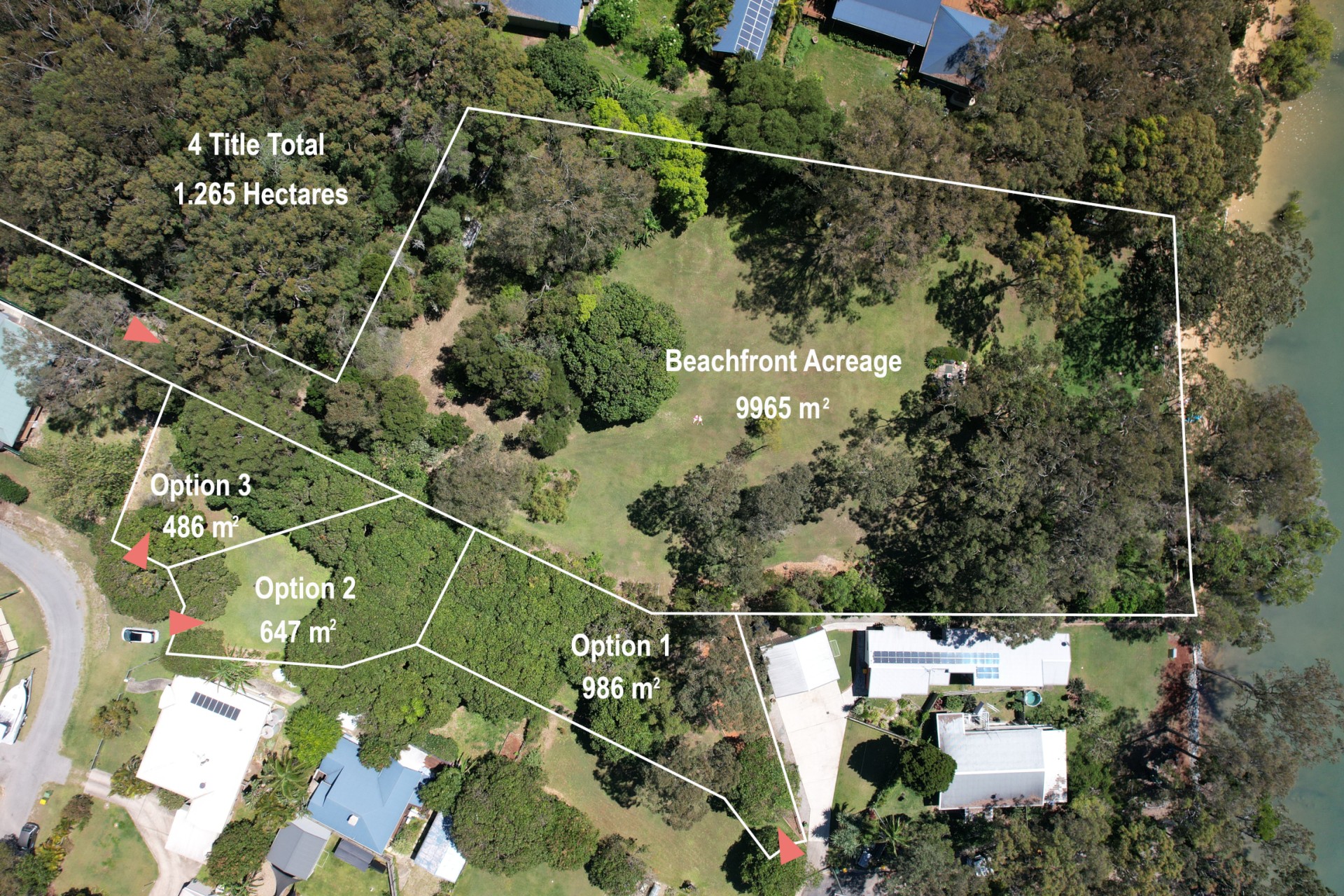 11. A serendipitous bonus is on offer here. The successful purchaser of the Waterfront Acreage will have first option on one or more of three smaller properties that lie adjacent to the acreage's south-eastern boundary. The four titles together make up a total of approximately 1.264 Hectares.... but the investment potential of the whole is definitely greater than the sum of its parts!