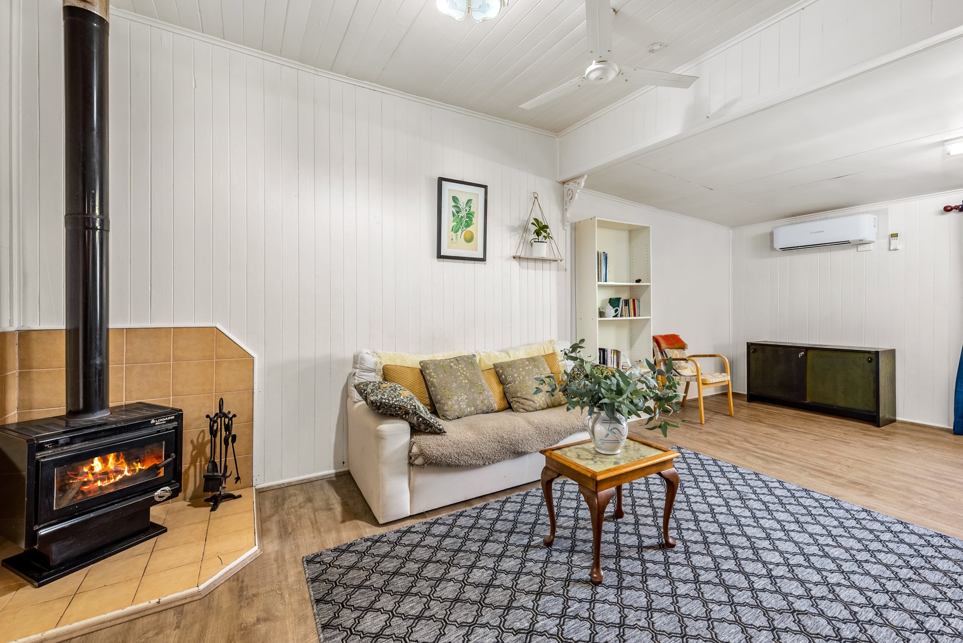 Air conditioning and wood fired heater for your comfort, ceiling fans throughout.