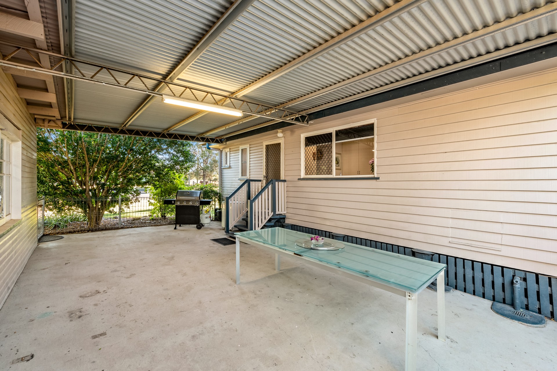 Large outdoor undercover living area for entertaining and relaxing.