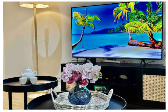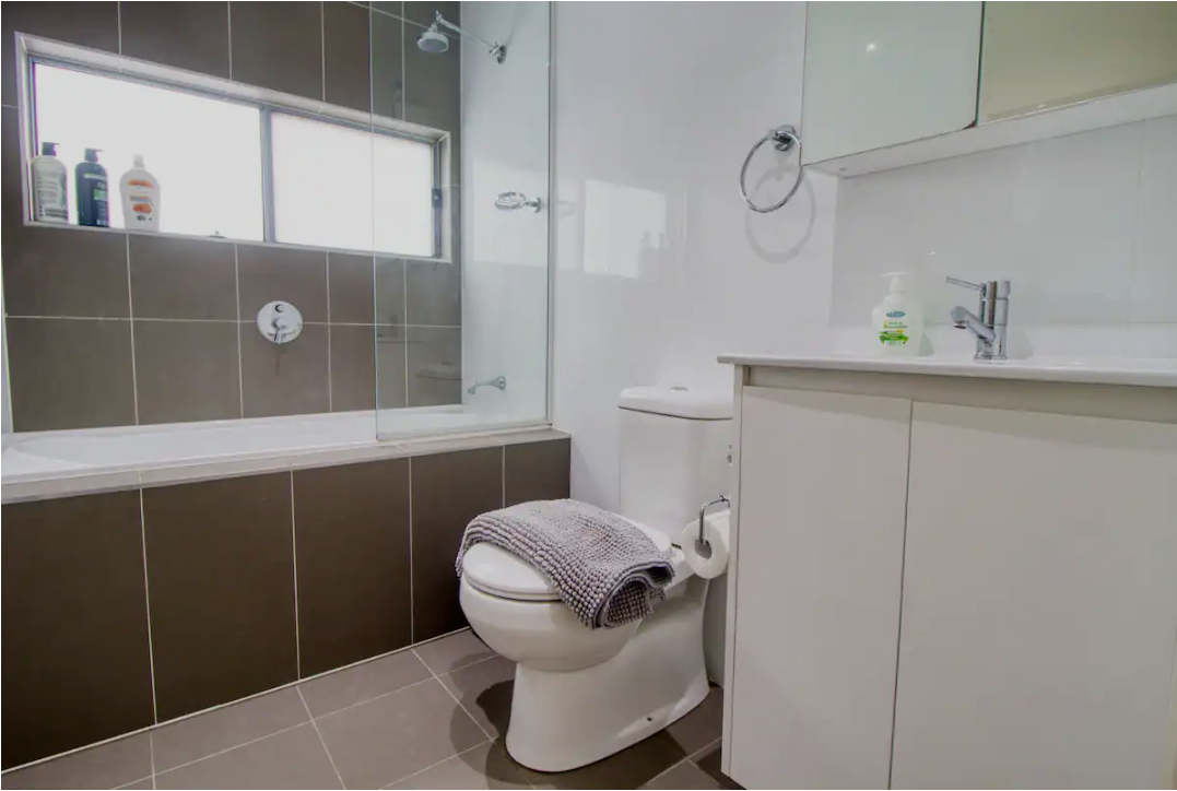 - Fully renovated bathroom with floor-to-ceiling tiles and a frameless shower screen