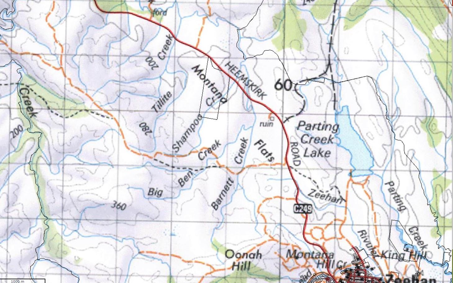 This absolutely unique property just 5 km from Zeehan on Heemskirk Road on Tasmania's picturesque west coast with no neighbours as far as the eye can see. Surrounded on three sides by the Mount Heemskirk Regional Reserve with the Parting Creek Regional Reserve over the road. This is a paradise get away from it all property but within easy reach of Zeehan township ready to build your dream home. The property is shown in the satellite image and on the map just above the middle of each image. Part of Zeehan is visible to the bottom right. For scale, the western boundary (left side) is 1.112 km long.