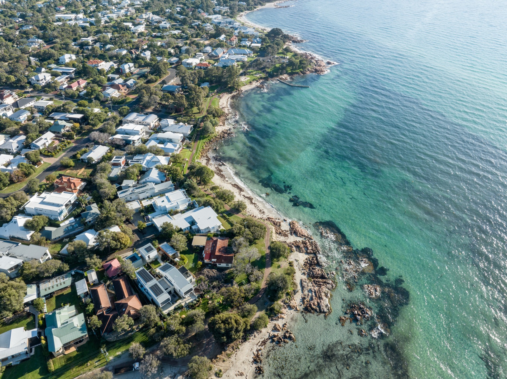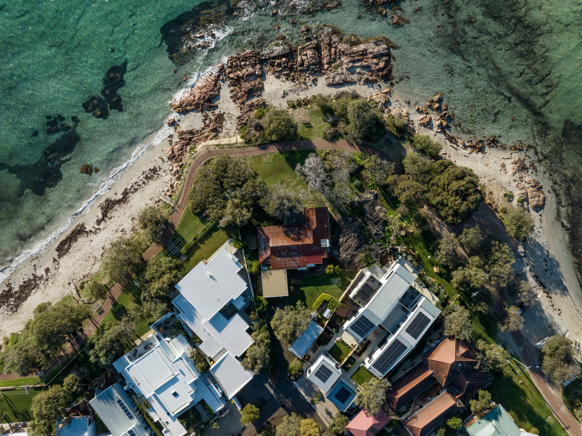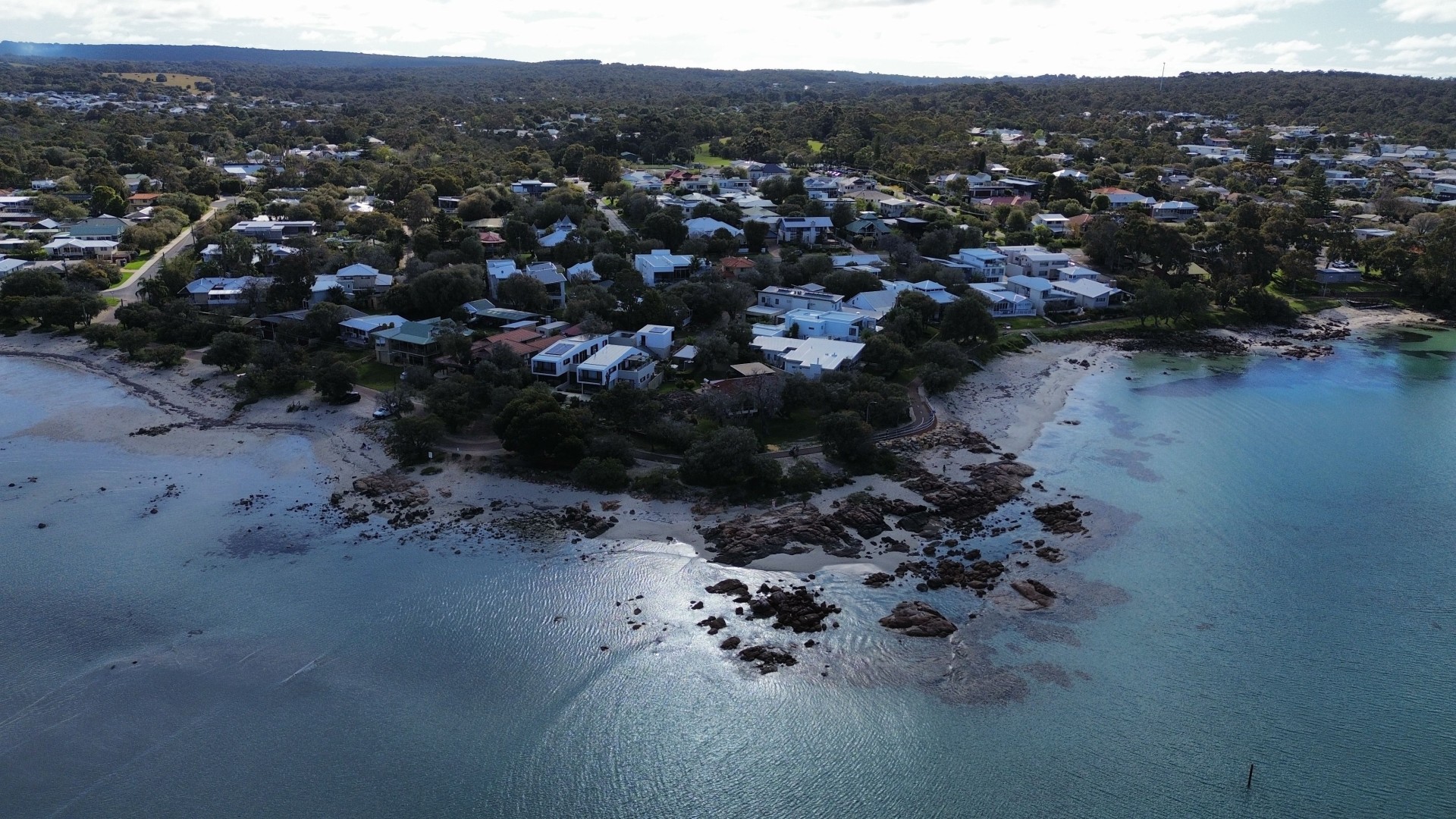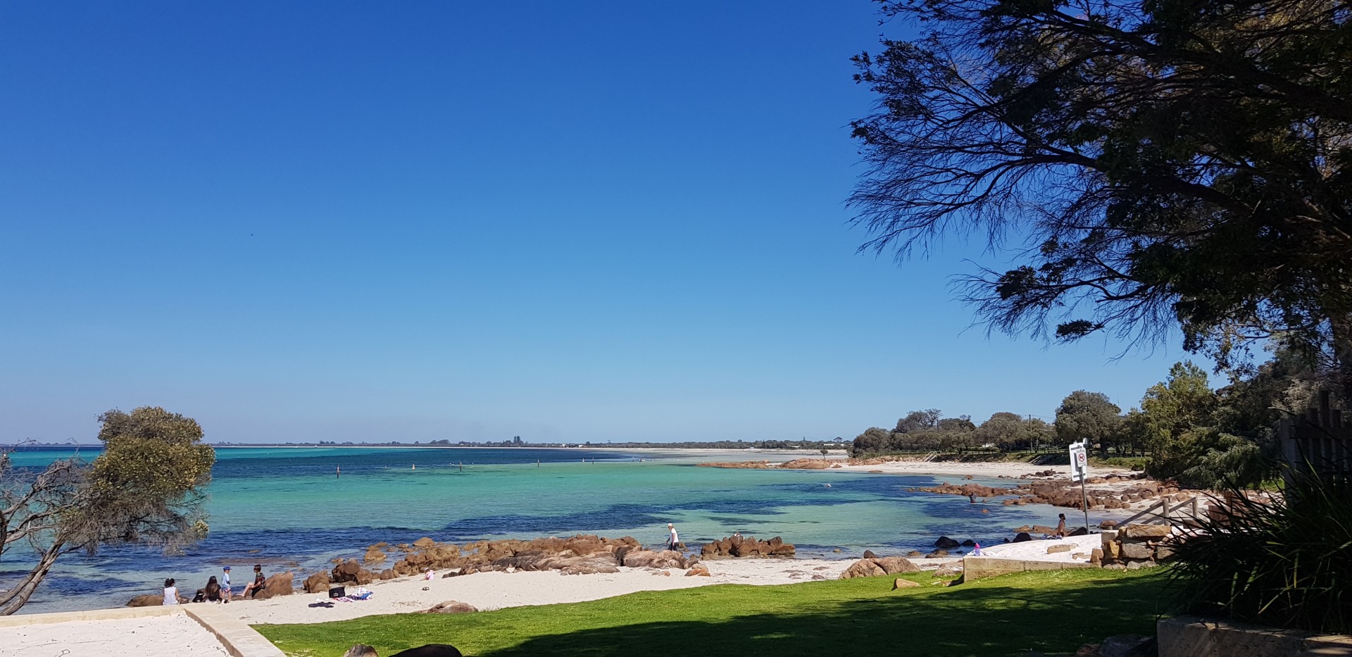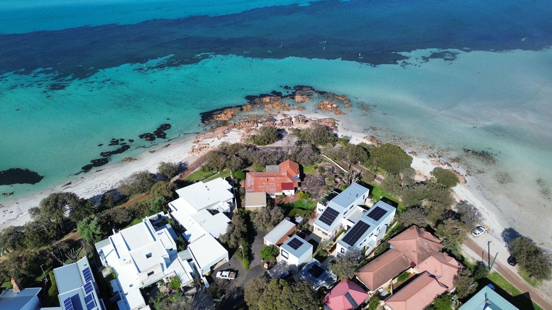 With barely 20 paces to access the swimming beach and only a slim, shared pathway which separates the front lawn from that beach, which is protected by a rocky outcrop on the shores of beautiful Geographe Bay.