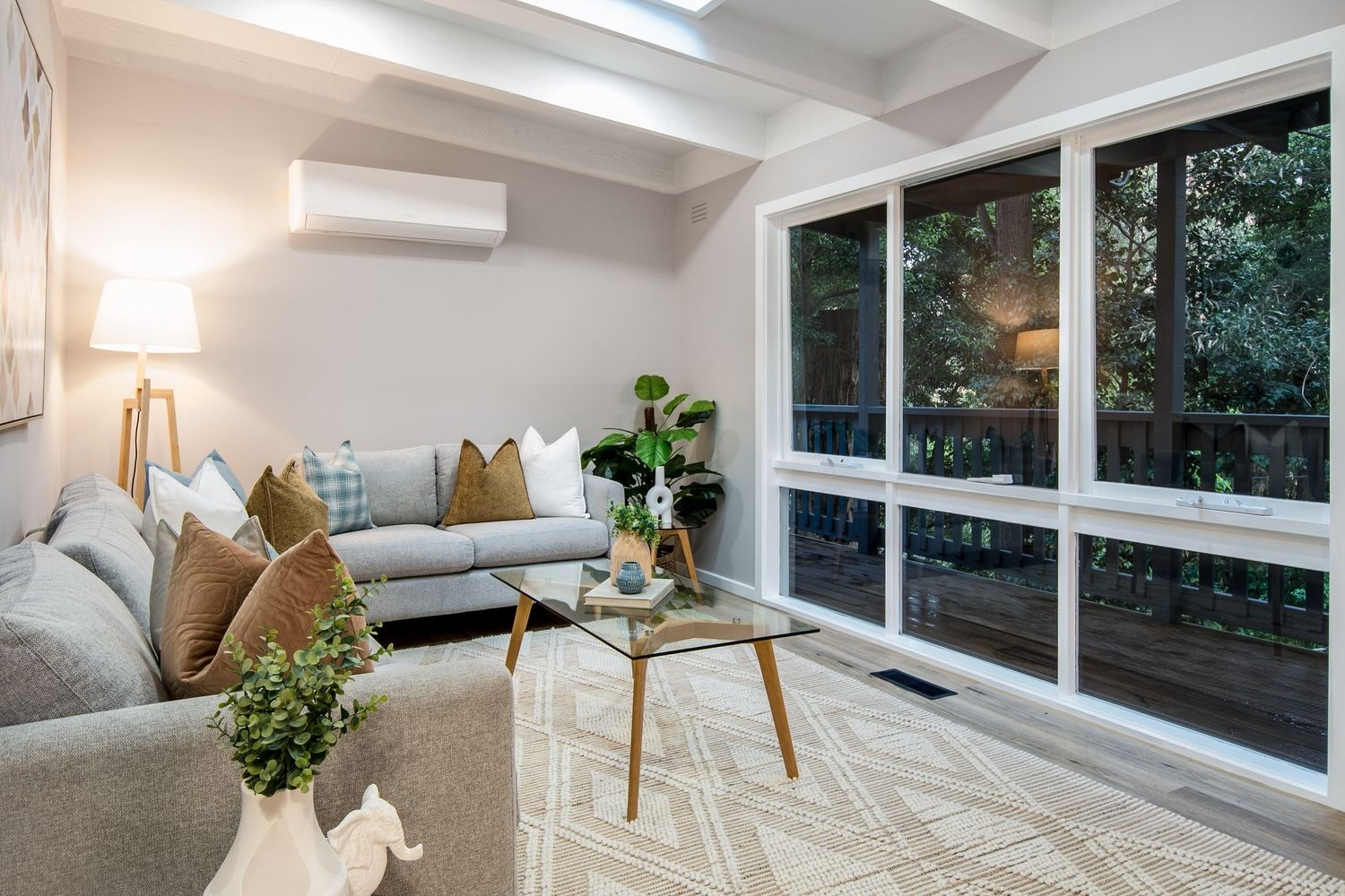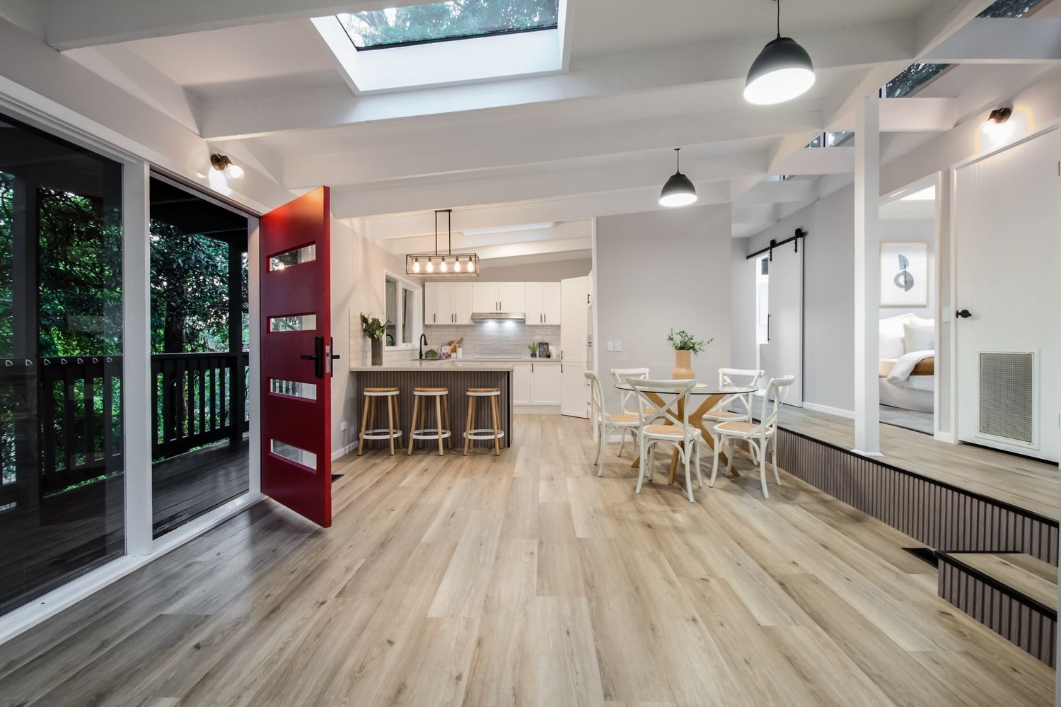 Bathed in natural light, raked ceilings featuring three large skylights, this contemporary but still a "Hills" home is surrounded by amazing greenery and wildlife, it creates an inviting place to relax in warmth and style.
