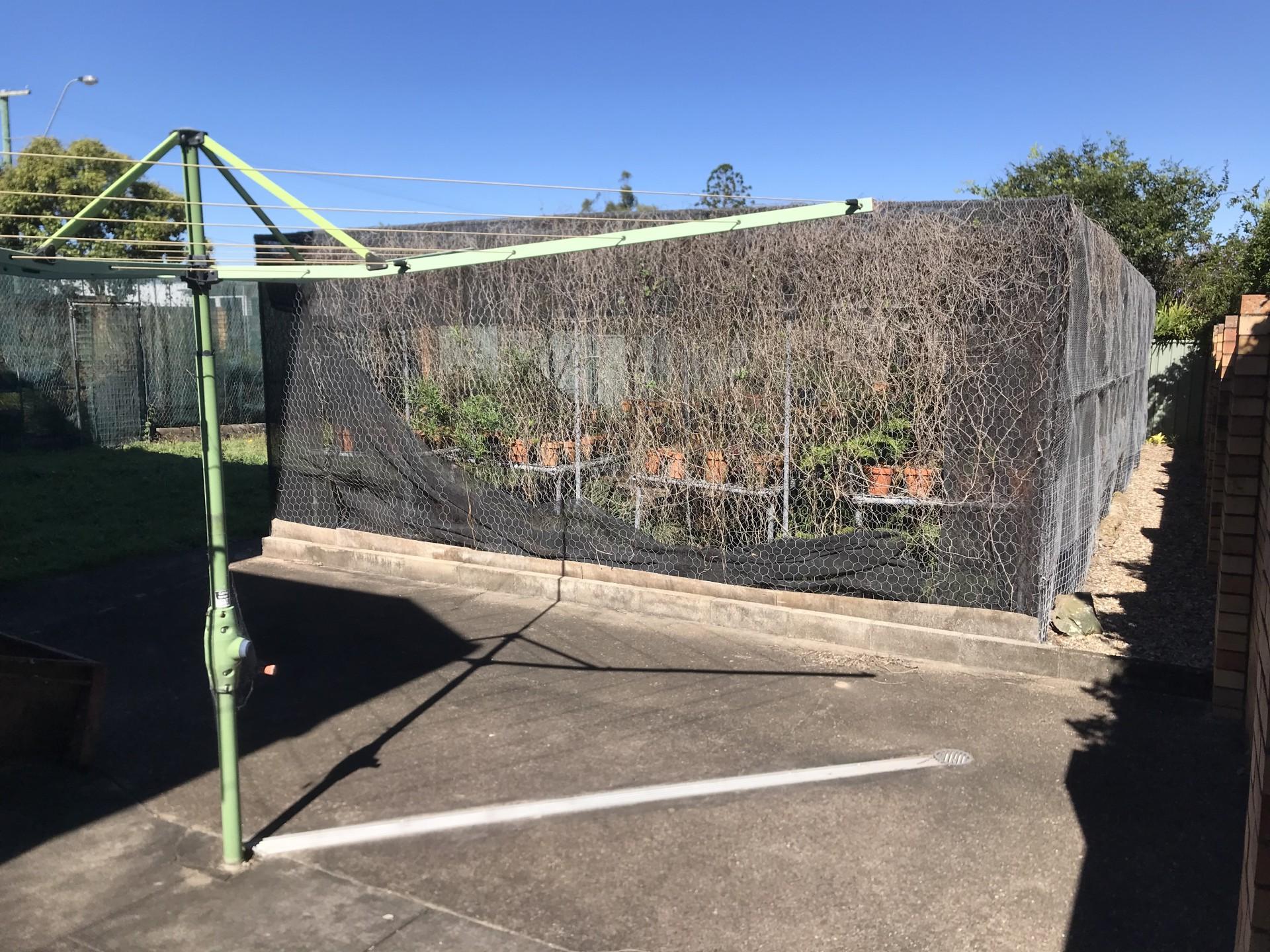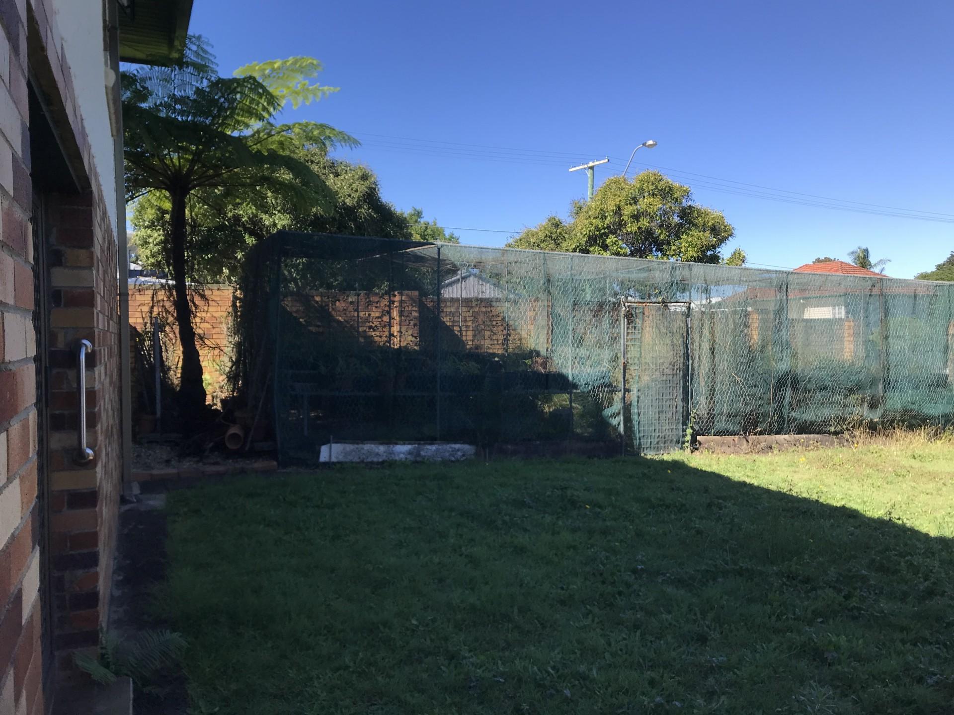 A large Sliding Glass Door provides access to the fully high fenced back yard accessing the Clothes Hoist, the 2 old large Shade Houses and the old Back Shed, with manual Tilt-a-door, high enough to clear a large 4WD.