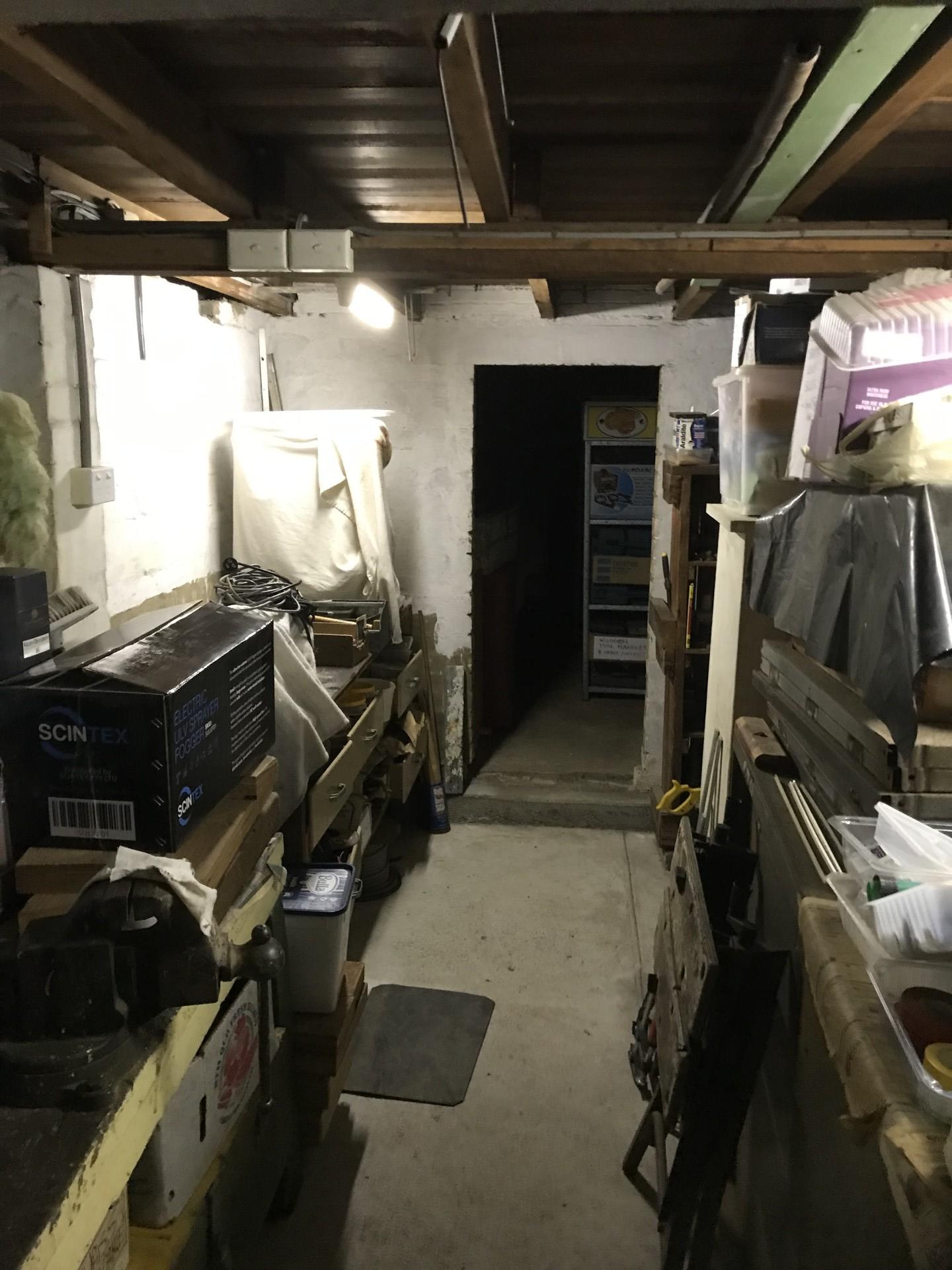 There are 2 Brick Cellars and a separate Work Shop area & Storage areas in addition to a Single Car Garage. with manual Tilt-a-door.