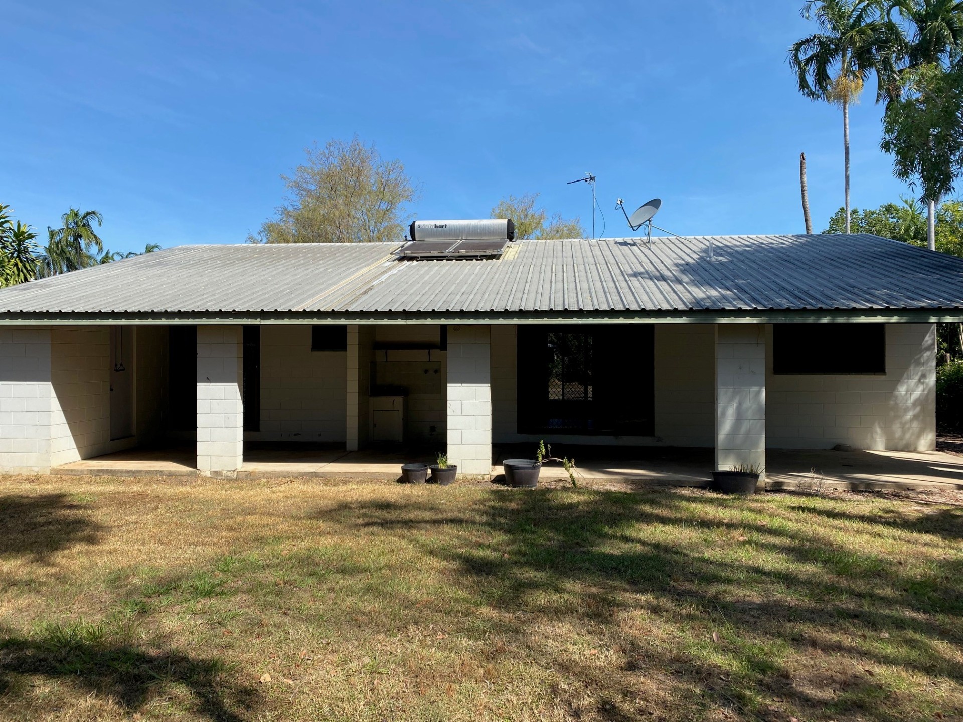 Privately constructed 3 bedroom , colour bond roof, block home, high ceilings , Solid core cupboards and robes ,fully air conditioned , gas cooktop , electric oven , solar hot water , small tool / Garden shed. Parking for 2 vehicles undercover, full length rear verandah with external laundry and 2nd bathroom . This property is conveniently located close to Leanyer and Casuarina Shopping centre , schools , new swimming facilities , Lee Point . This suburb was originally called Woodleigh Gardens , planning did not allow for the construction of government housing . A great location for a family ( young or older)