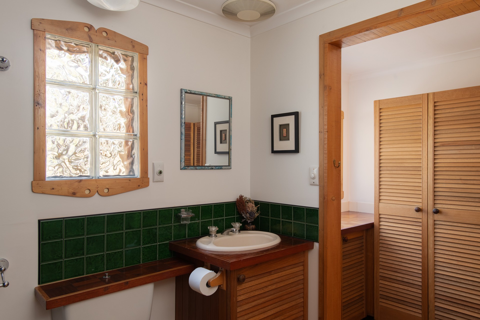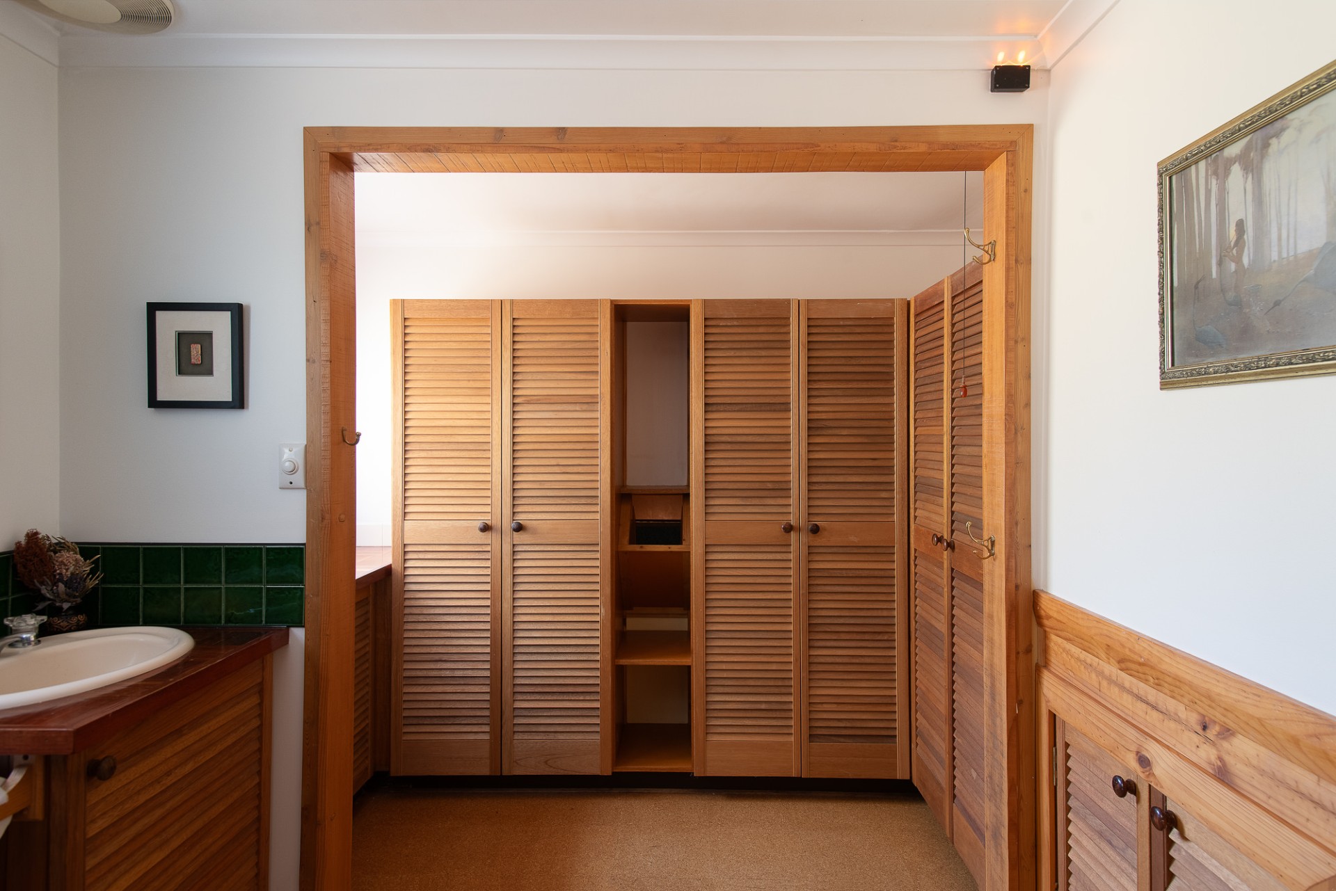 - bath/shower, toilet, and a mass of storage cupboards in the bathroom.