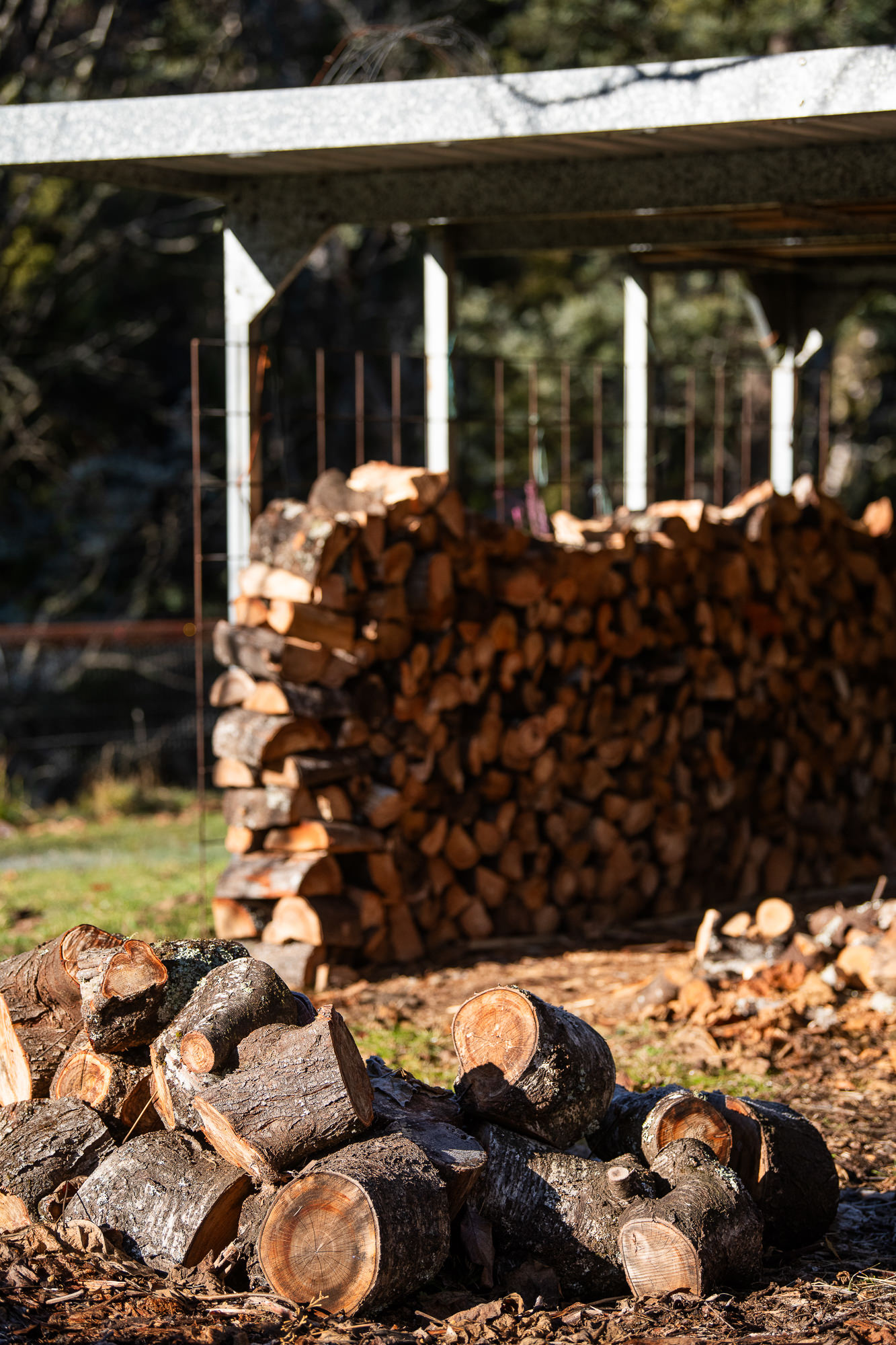- a two-vehicle carport currently used to store firewood gathered from the property