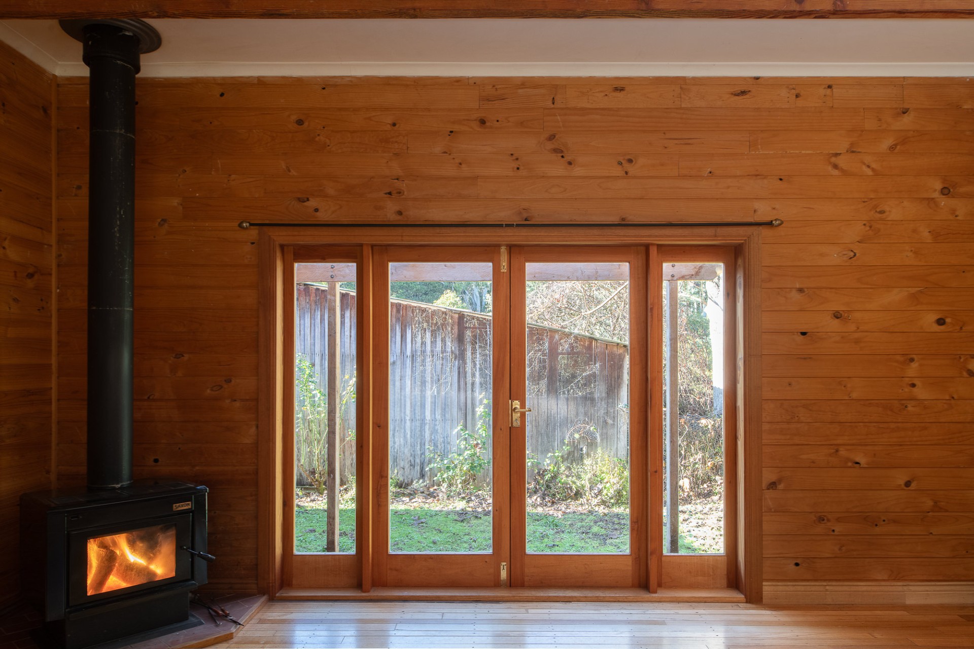 - a one cubic metre indoor wood-box in the sunroom, with a wall door opening outside.