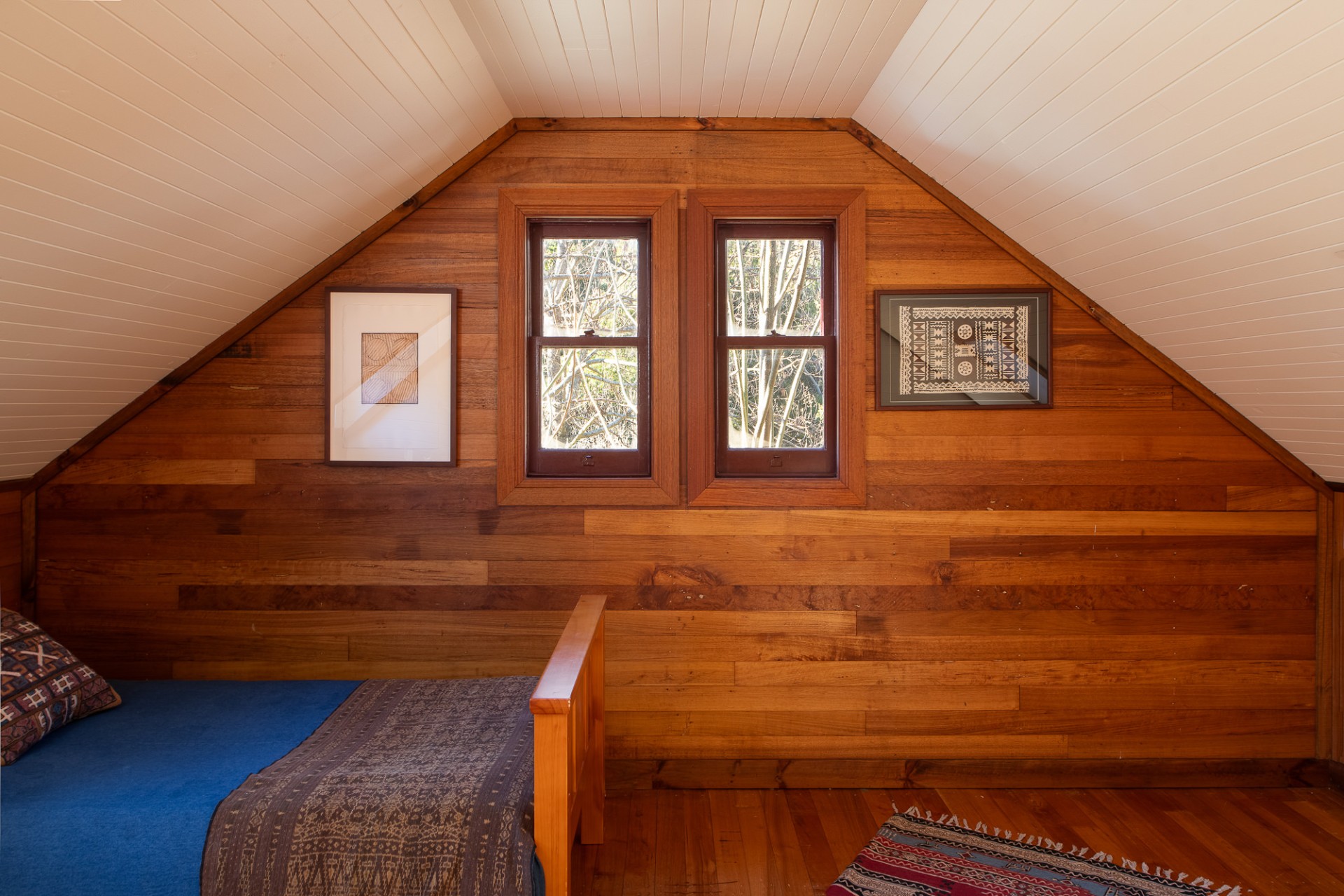 - upstairs are three bedrooms, cubby room off one, walk-in-wardrobe off another, yoga room, drying room with hot water tank, and a door that encloses stairs leading to the ladybird tower.